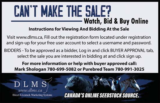 We are pleased to announce that we will have the services of DLMS. This will allow you to bid on the bulls via the internet. Of course, we would rather you attend the sale and our hospitality afterwards, but we well know today’s world just keeps getting busier and busier! But, if for some reason you cannot attend, this gives you the opportunity to bid on the bulls at the live auction. Please remember to pre-register at www.dlms.ca 24 hrs. prior to the sale.