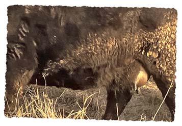 An extremely deep sided walking bull purchased from Hamilton Farms. We selected him for his calving ease and extremely good performance. His dam is a favorite at Hamilton’s, a moderate framed cow with an excellent level udder. We sadly lost 135G through the winter of 2021 to an injury, fortunately though we have semen in the tank to utilize his genetics for years to come. Bull calves average birthweight is 80 lbs. Heifer calves is 75 lbs.