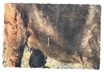 For any of you not familiar with our program, we do make our cows work for themselves around here. Our cows are expected to forage for themselves well into the winter months, even into February in some cases, weather depending of course. Our idea around here is “good cows raise good calves” we are extremely particular about our mother cows’ udder quality, it is of upmost importance with our cows calving in later April and May on green grass. Udder support & teat size is very important with a cow on green grass with a 80-85 lb calf sucking on her, you will recognize quickly how important those two things are on udder quality. We breed our purebred herd in 2 cycles, one cycle of A.I. and one cycle of walking bulls, so she has to be fertile to stay around here. Our cows are expected to travel distances in certain times of the year for feed and water so foot quality and leg structure is as well of upmost importance. Grazing cattle in January and February the cows need to be moderate and easy keeping to maintain body condition while foraging on sometimes poorer stockpiled grass.