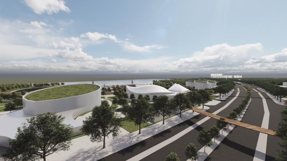 PHẦN TỔ CHỨC KHÔNG GIAN KIẾN TRÚC CẢNH QUAN 24 MẶT ĐỨNG TOÀN KHU NHÌN TỪ ĐƯỜNG D2 TỶ LỆ 1/2000 MẶT ĐỨNG TOÀN KHU NHÌN TỪ SÔNG ĐỒNG NAI TỶ LỆ 1/2000
