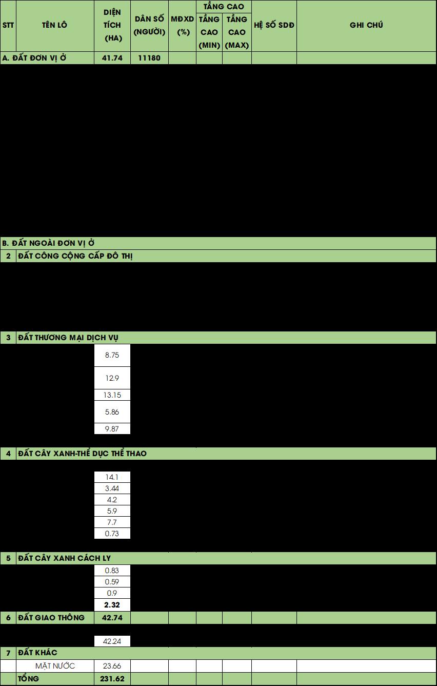 QUY MÔ: 231.62 HA