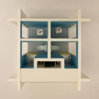 To reconceptualize this relation of permanent and adjustable elements in response to the variety of needs of the people living there for an urban context, this project proposes to organize pairs of dwellings on a grid with an offset central core and two strips housing the kitchen and storage on either side making up the permanent elements. Offsetting the core allows for a variety of unit arrangements and with the addition of operable walls, the rooms can be joined together or closed off to facilitate different programs with varying levels of privacy.
