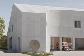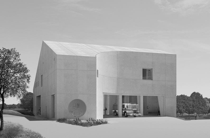 This project derives its formal and material strategy by responding to the site conditions and programmatic needs resulting in a radial organization. This radial strategy unifies the program of the fire house and community center, their respective massing and the overall structural organization. The sculpted massing comes as a reaction the the site’s urban and natural conditions creating a stronger curve to accomodate the fire house using the fire truck turning radius as a guide and a gentler curve to accomodate the community center facing the natural setting using the site contours as a guide. The curves are reconciled structurally and programmaticaly by following a radial grid that allows the geometry of the circular courtyard to speak to the curvature of the south and north facades. The materiality of the building is considering the fire house as the fortress protecting the more delicate community center and therefore creating this protective concrete shell around the channel glass facade.