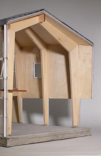 The repition and relatively small size of the elements that make up the grid system for the units can be prefabricated as CLT panels to streamline the assembly of units.