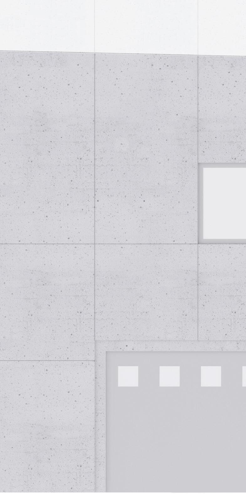 L. The concrete basement wall above ground is cladded with concrete panels that have precasted patterns.