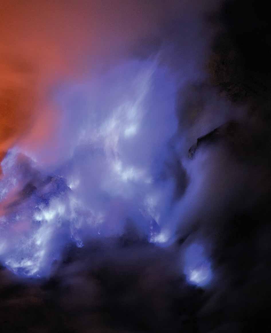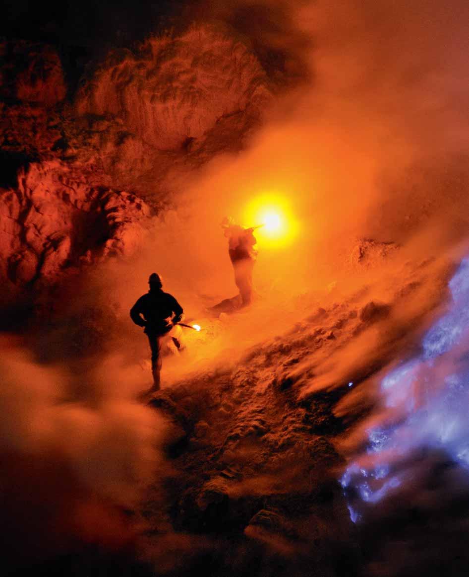 Sur l’île de Java, le volcan Kawah Ijen offre un spectacle saisissant: des flammes bleu électrique embrasent la nuit, tandis que les mineurs, silhouettes d’ombre et de courage, arrachent de la chaleur et des fumées toxique un trésor de soufre.