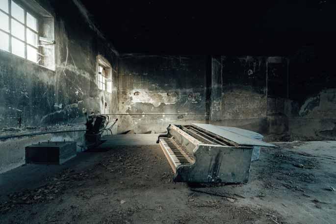 Depuis plus de dix ans, le photographe et pianiste français Romain Thiery parcourt le monde à la recherche de pianos abandonnés. Découverts dans des châteaux en ruine, des théâtres désertés ou des maisons oubliées, ces instruments sont photographiés tels qu’ils sont trouvés, sans mise en scène.