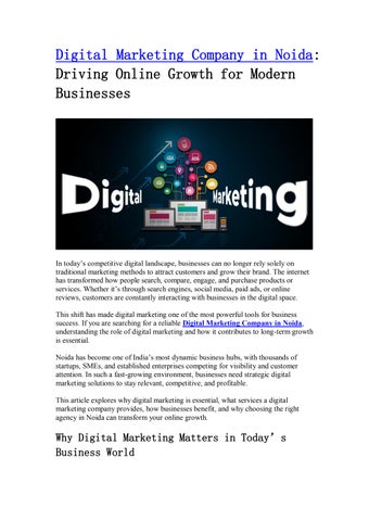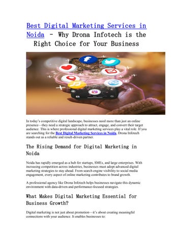 Drona Infotech is the best digital marketing company in Noida, known for delivering powerful and result-driven online growth strategies. With a strong focus on innovation and performance, the company offers a complete range of services including Digital Marketing, Social Media Marketing, Search Engine Optimization (SEO), Performance Marketing, Online Reputation Management, Internet Marketing, AI Marketing, and Pay Per Click (PPC) Campaigns. Backed by a skilled team of experts, Drona Infotech helps businesses build a strong digital presence, generate quality leads, and achieve measurable success in today’s competitive online landscape.