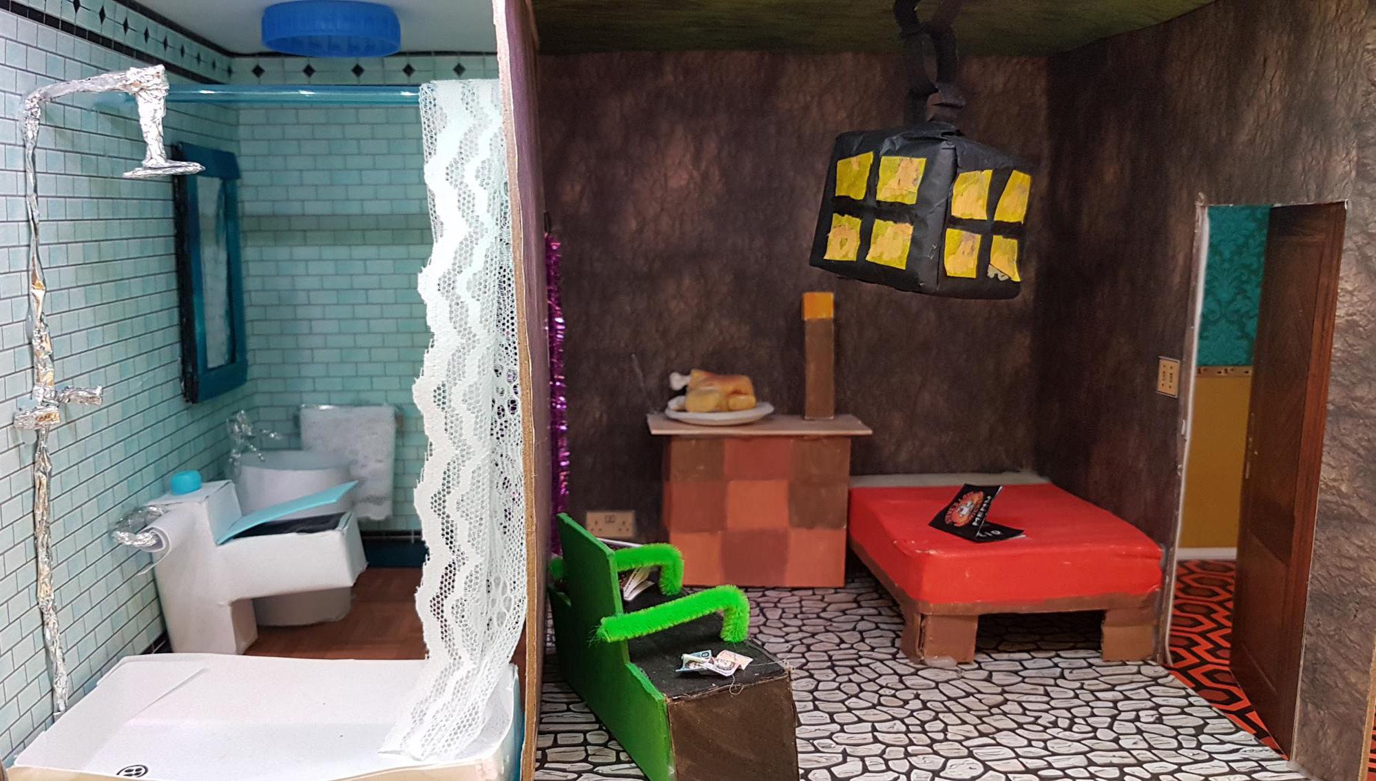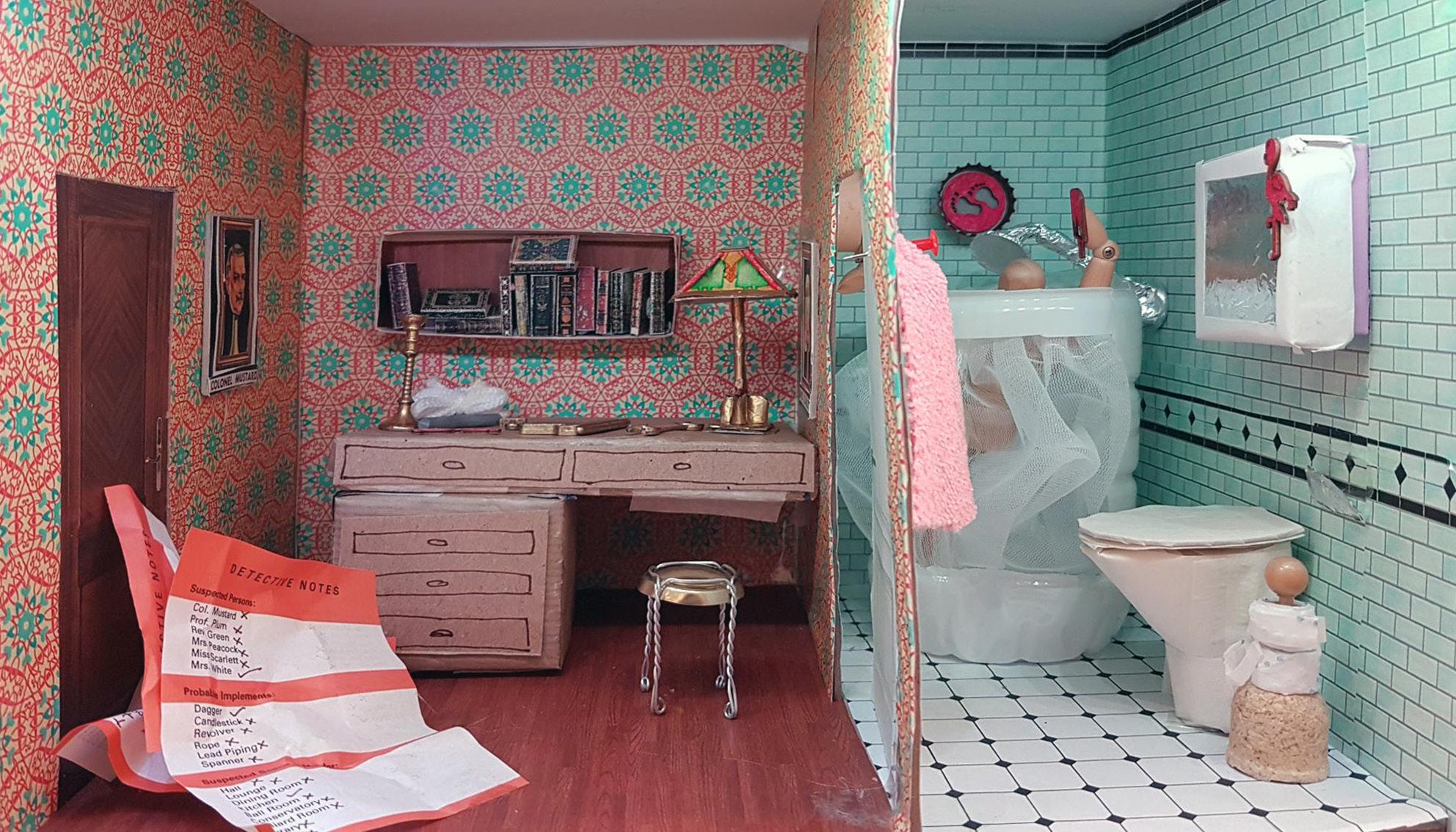 A collaborative family project with 3 generations taking part. The mystery is… where is the hotel room situated? Who is staying there and what has this hotel resident done? It was a recent occurrence in a capital city - not in the UK. Clues in the room. ‘Burglar Bill ‘ … is not the correct answer.