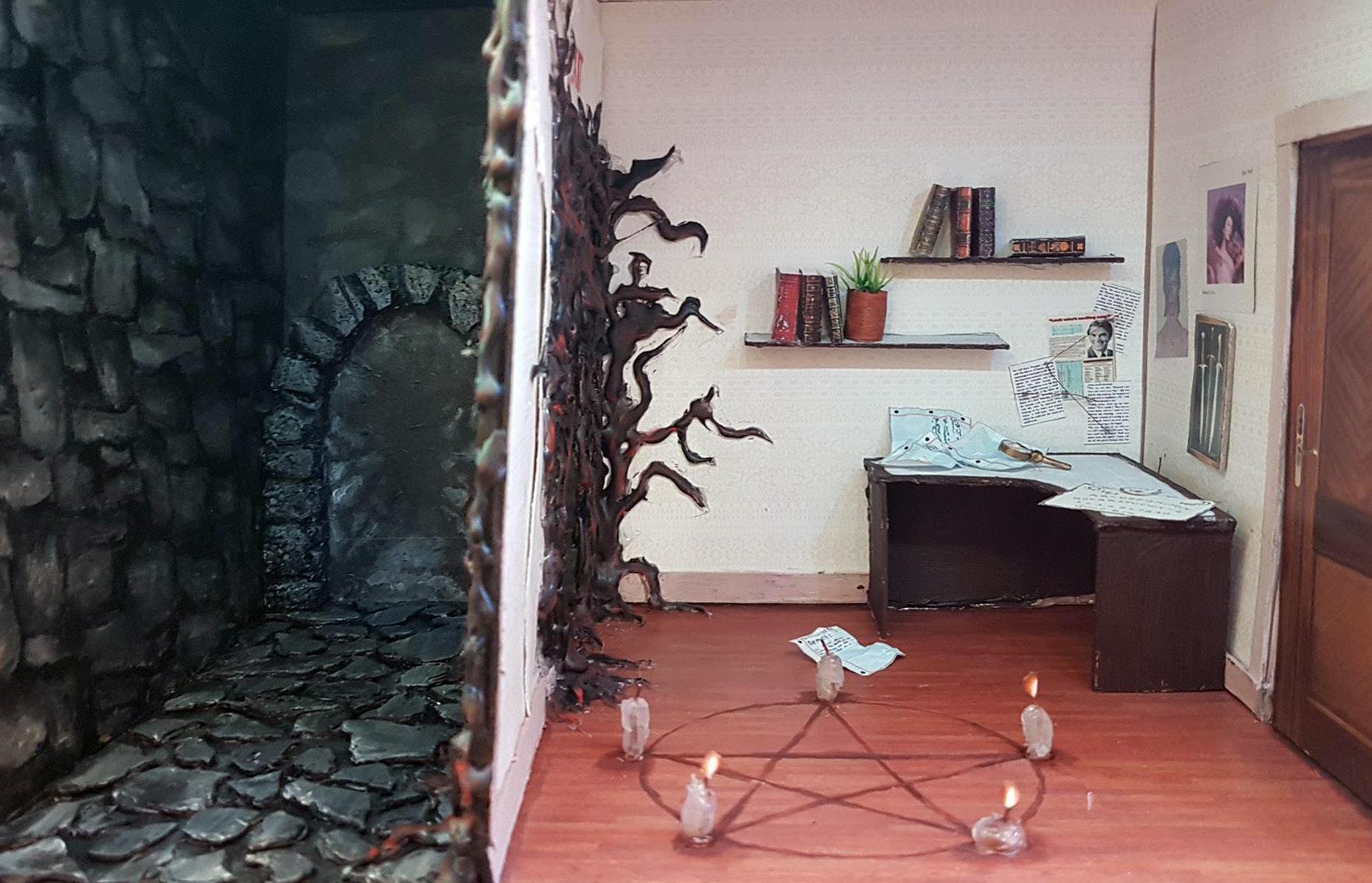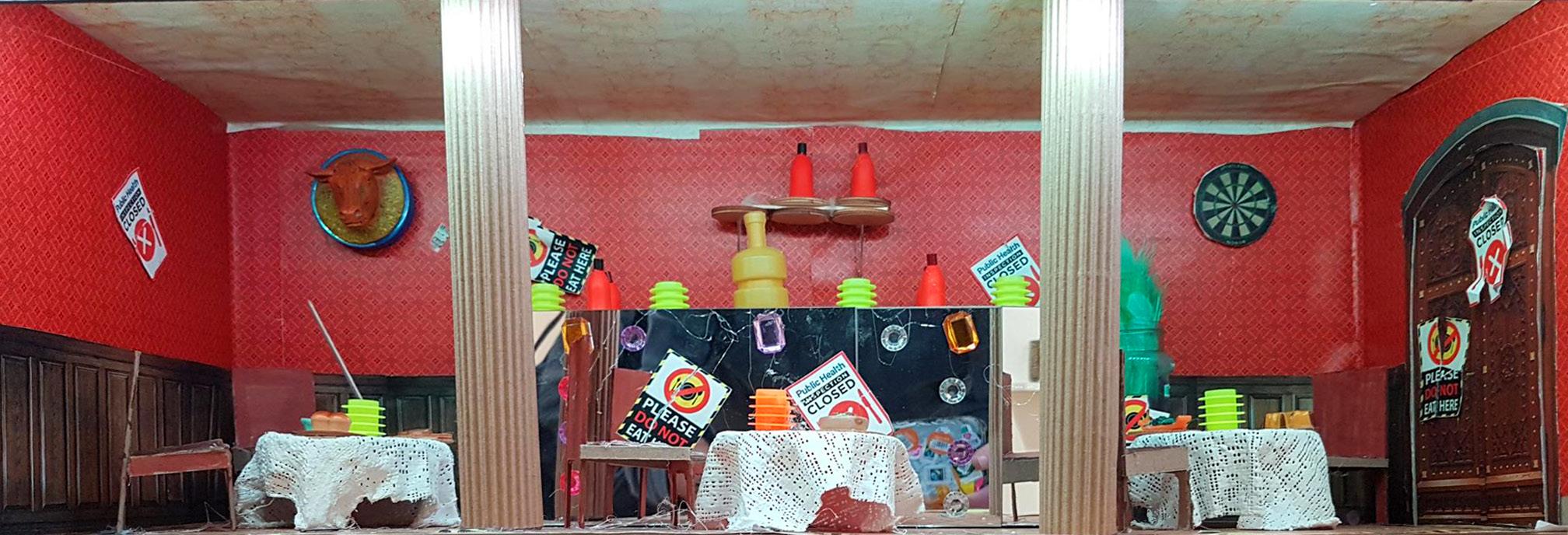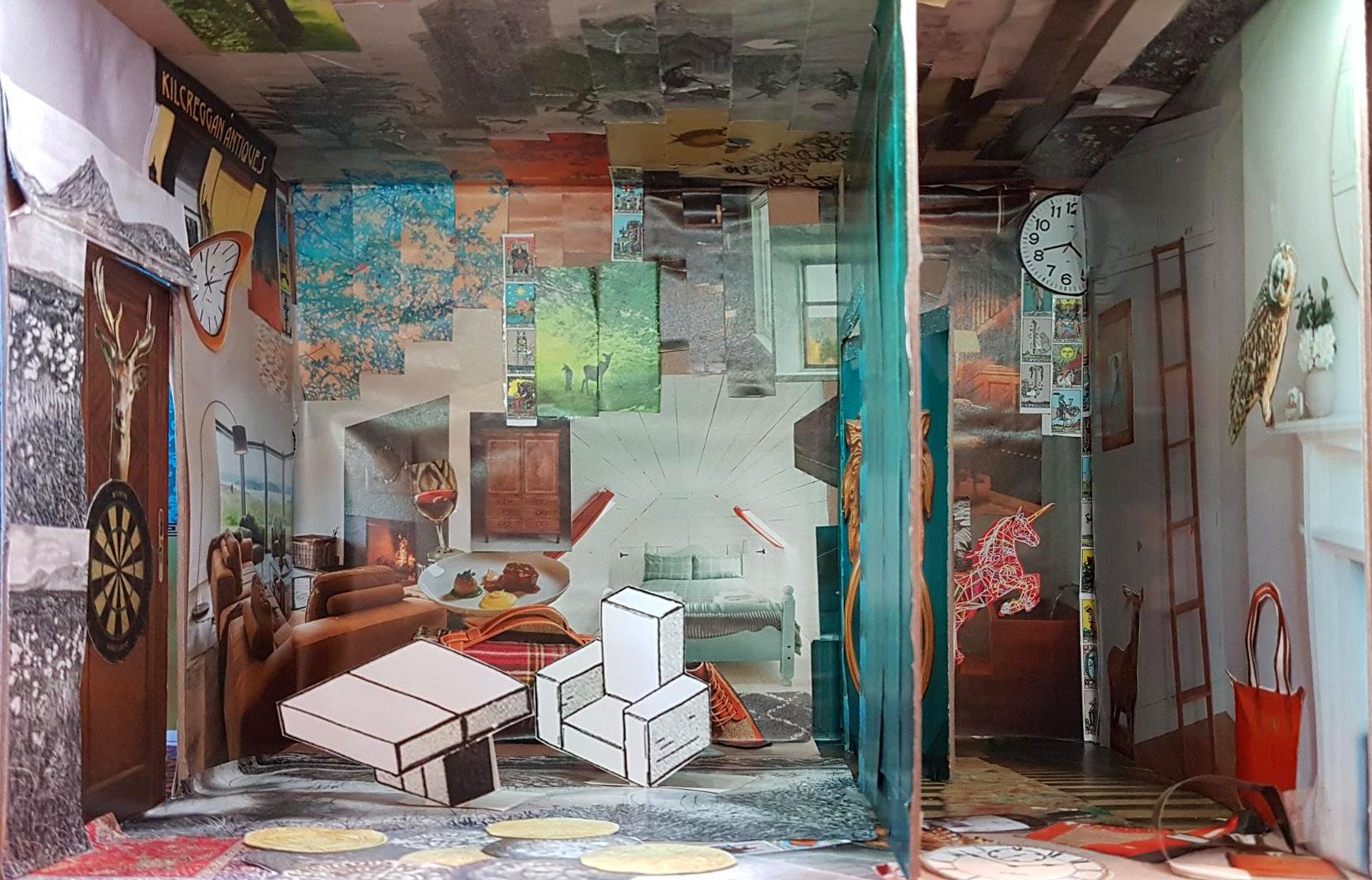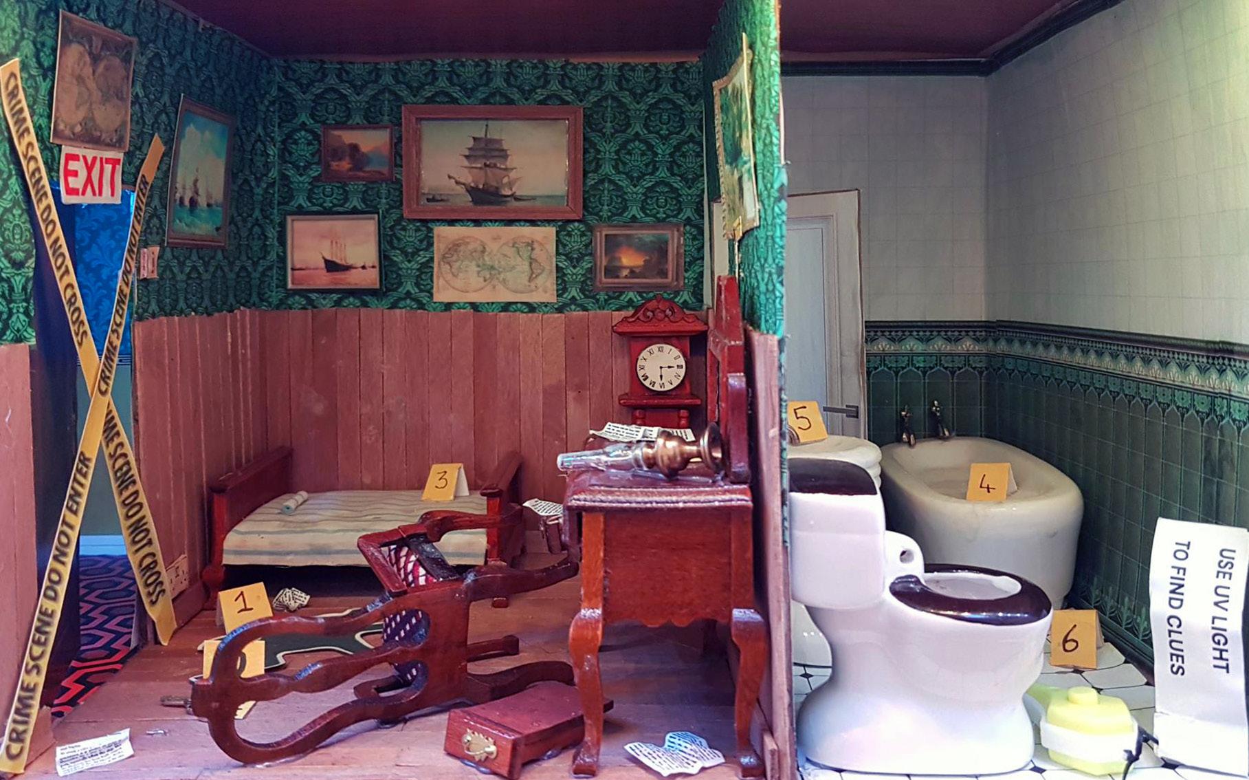 In December 2025 An Lanntair hosted an exhibition by Tom Hickman called ‘Dolls Houses and the Art of the Miniaturist ‘. Linked to this exhibition An Lanntair initiated the An Lanntair Mystery Hotel project to engage people in the run up to the exhibition. An Lanntair created ‘flat pack’ hotel rooms complete with printed resources including, wallpaper, power points, signs, windows and much more. A general call out was made to members of the public to come and collect a room, take it home and construct and decorate it. When completed they were to bring it back to An Lanntair to become part of the An Lanntair Mystery Hotel which featured in the exhibition. The only guideline that they had to follow was to decide on some mystery / story that had taken place in the room and design the room accordingly.