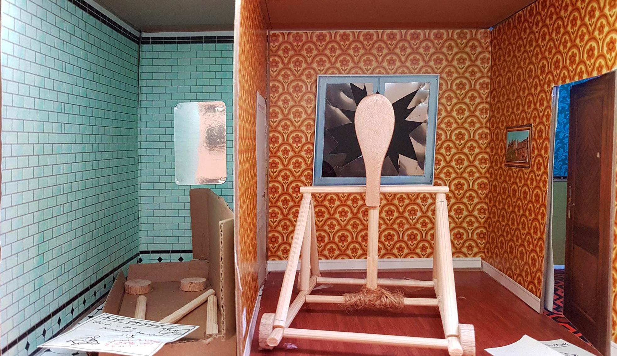 Wyle E Coyote meets grand designs in this room featuring the failed use of a personal transport device.
