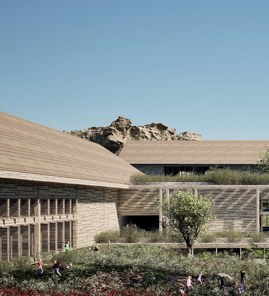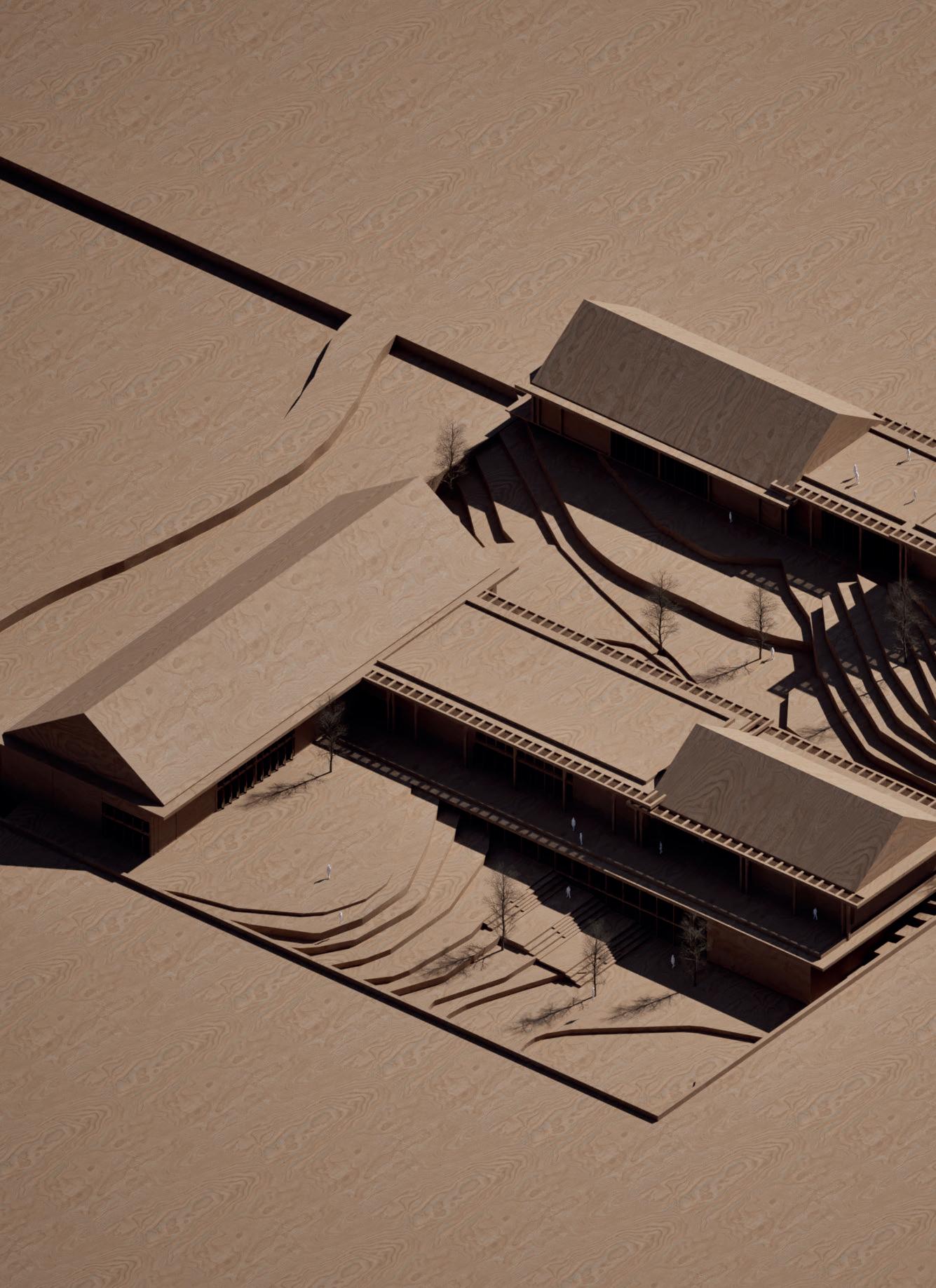 Les salles de classe, polyvalentes et ouvertes, offrent une expérience éducative sans frontières. Les panneaux pivotants permettent aux étudiants d’apprendre à l’intérieur comme à l’extérieur, en fonction de leurs besoins et de leurs envies. La grande bibliothèque, située dans un espace négatif, crée une atmosphère enveloppante pour favoriser la concentration. Les jardins et les cuisines, symboles d’ouverture et de partage, sont des lieux d’apprentissage des cultures. Les salles d’art, ouvertes sur la mer infinie, invitent à la créativité et à la contemplation. Enfin, le centre culturel est un pôle pour la communauté, où les grands et les petits se retrouvent pour célébrer la diversité et la vie communautaire.