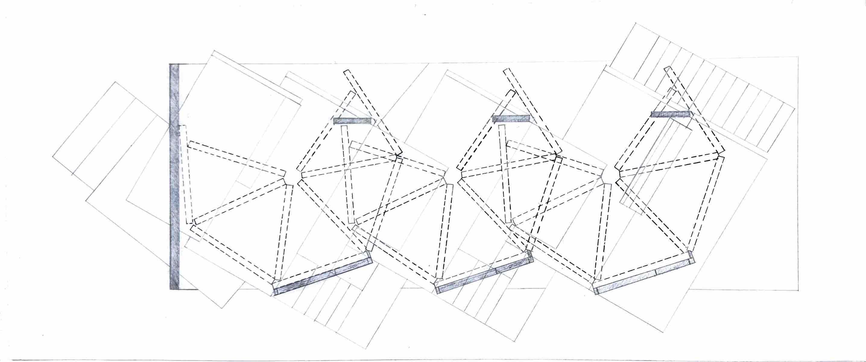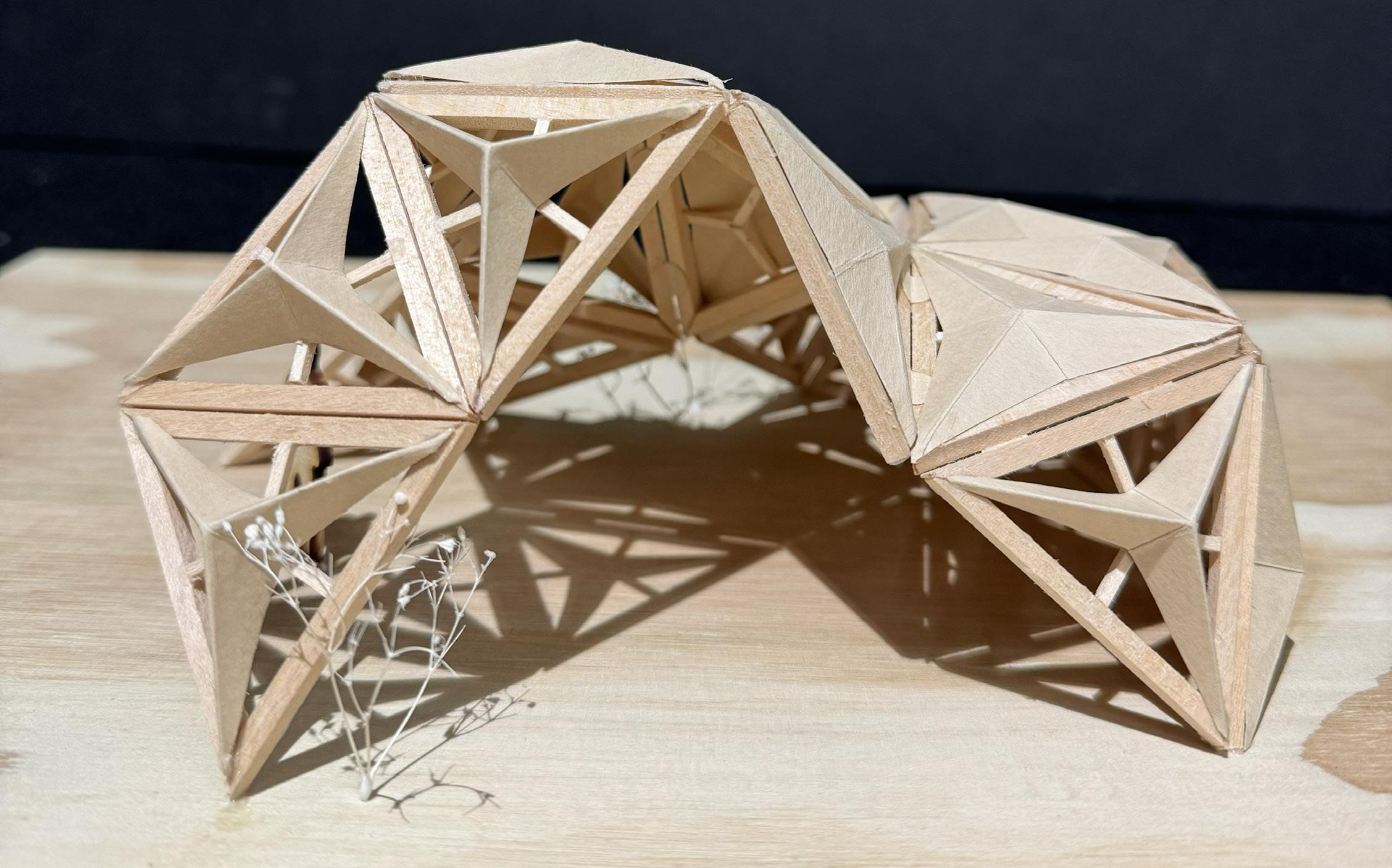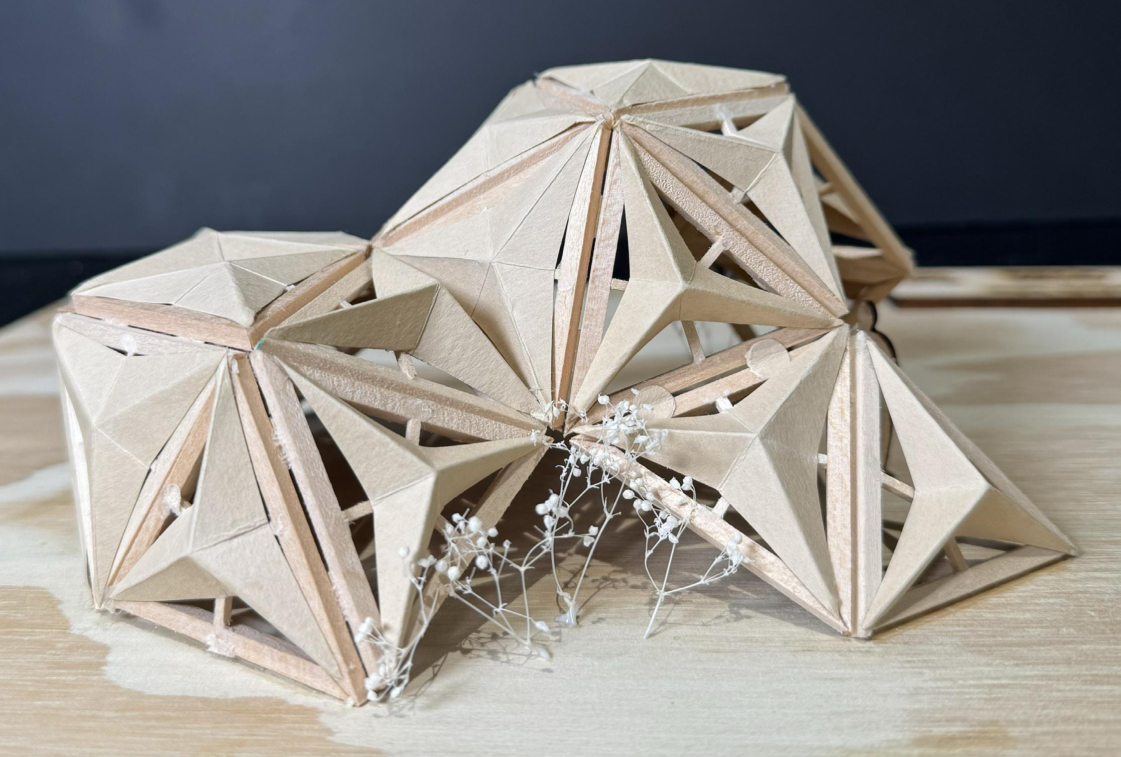 could be blocked. I knew the coverage the individual modules provided would need to be flexible, adapting to the position of the sun. This constraint led me to the idea of wooden origami-like forms that would be able to expand and construct, based on the lighting needs.