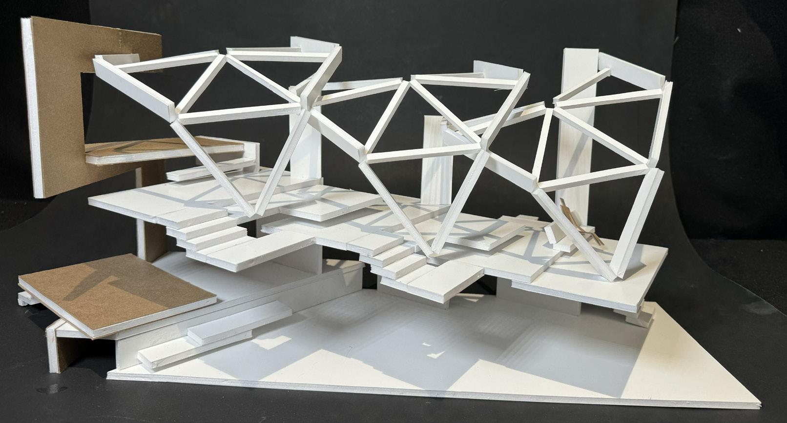 The Pavilion project was an opportunity to innovate and explore different ways to prioritize human comfort within an open-air context. It aims to block harsh sunlight while maintaining ventilation and natural views.