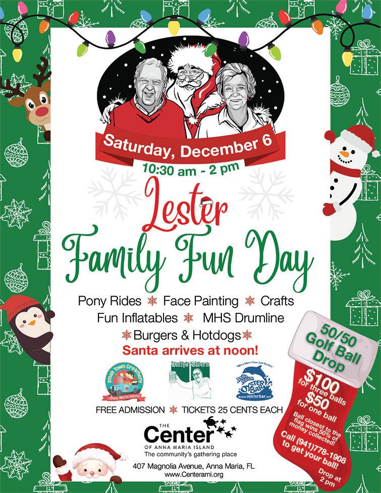 Lester Family Fun Day, The Center of Anna Maria Island, 407 Magnolia Ave., Anna Maria, 10:30 a.m. to 2 p.m. Music on the Porch, Florida Maritime Museum, 4415 119th St. W., Cortez, 2-4 p.m.