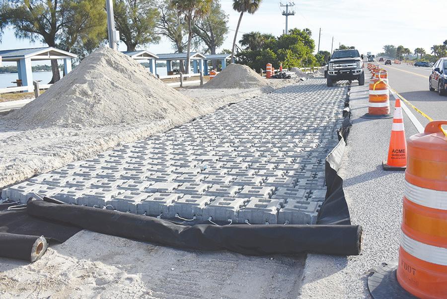 On Nov. 26, paver-like articulated concrete mats were installed along the north side of Manatee Avenue on the Palma Sola Causeway to provide a smoother transition from the roadway to the unpaved parking lot. According to Manatee County Natural Resources Director Charlie Hunsicker, “This is a project of the Manatee Operations Center, FDOT District 1 Maintenance Division, working on State Road 64. They are installing articulated concrete mats to further stabilize and protect the edge of pavement with the road shoulder.”