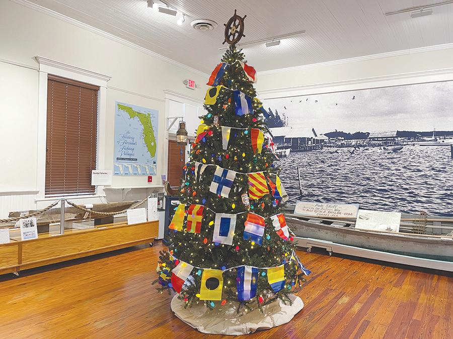 The Christmas tree is decorated in nautical flags at the Florida Maritime Museum in Cortez.