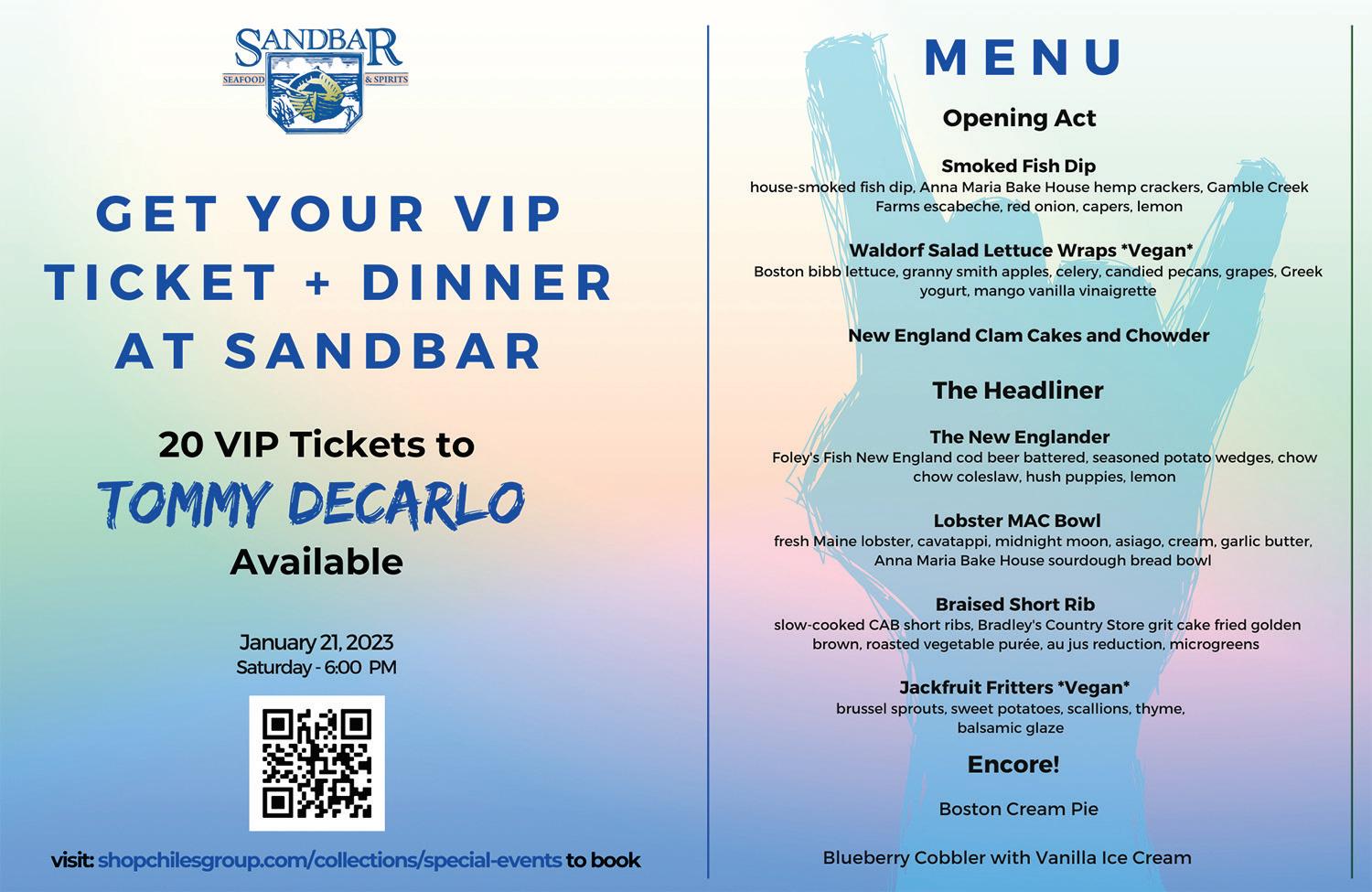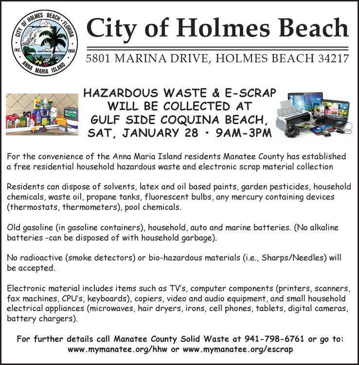 The Anna Maria City Commission will meet on Thursday, Jan. 12 at 2 p.m. The commission will honor Carol Carter and Suzi Fox as the city’s Distinguished Citizens of the Year. The city attorney will then present the first reading of a new food truck ordinance that, if adopted, would limit food trucks to operating only on privatelyowned properties located in the C-1 (Commercial) zoning district. The mayor will provide a Reimagining Pine Avenue update. The consent agenda includes Dusty Crane’s appointment to the Planning and Zoning Board and special event permit and permit fee waiver requests for The Center’s The Orchestra (former ELO members) concert on March 21, Murder Mystery Dinner on March 4, St. Patrick’s Day Parade on March 12, Wine Tasting Tour on March 18 and the Vintage Flea market at City Pier Park on Feb. 12.