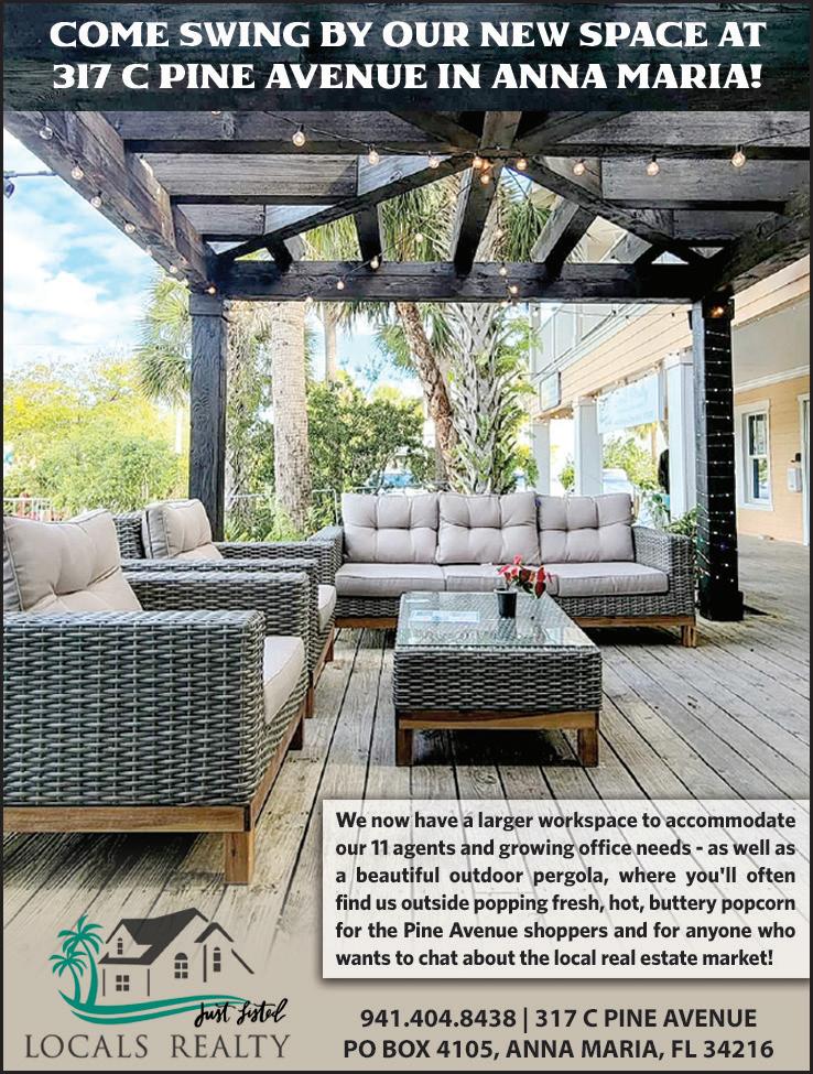 JANUARY 11, 2023 www.amisun.com THE SUN 27 ANNA MARI A IS LA ND 24 0 Oak Avenue 4 B eds | 3/1 B aths | 2,8 47 SF Kathy H arma n 941-9 00 -9828 | A4555313 | $ 4,495,000 ANNA MARI A IS LA ND 6509 G ulf D ri ve 4 B eds | 4 /1 B aths | 2,95 4 SF Hannah Hilly ard & G eorge M yers 941-744 -7358 | A4550326 | $3,850,000 ANNA MARI A IS LA ND 520 58th Stree t 5 B eds | 3/ 2 B aths | 3,414 SF Hannah Hilly ard & G eorge M yers 941-744 -7358 | A45 45105 | $2,995,000 CO RTEZ 12410 B ay pointe Ter race 4 B eds | 3 B aths | 2,891 SF Hannah Hilly ard & G eorge M yers 941-744 -7358 | A455176 8 | $2, 20 0,000 ANNA MARI A IS LA ND 70 9 G ladiolus Stree t 4 B eds | 3 B aths | 1,933 SF Hannah Hilly ard & G eorge M yers 941-744 -7358 | A4552297 | $1,875,000 ANNA MARI A IS LA ND 218 82n d Stree t 3 B eds | 2 B aths | 1,802 SF Kathy H arma n 941-9 00 -9828 | A45 41555 | $1,720,000 ANNA MARI A IS LA ND 622 N Point Drive | 4 Beds3/ 2 B aths | 3,249 SF Hannah Hilly ard & George Myers 941-744 -7358 | A4548377 | $ 4,55 0,000 ANNA MARI A IS LA ND 101 M angrove Avenue 5 Beds1/1 B aths | 2,522 SF Hannah Hilly ard & George Myers 941-744 -7358 A45459 03 | $ 4,750,000