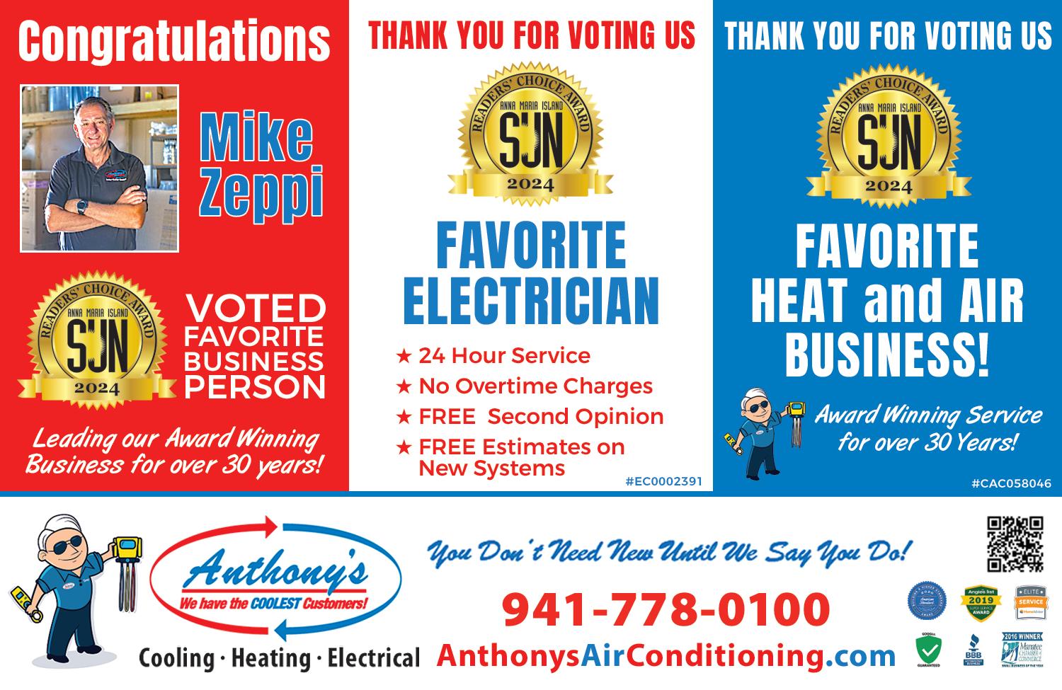 ANTHONY’S HEATING & COOLING 1614 20th St. E. Palmetto, 749-5307