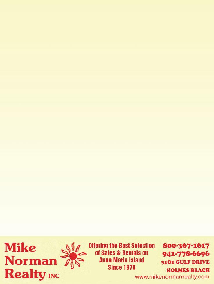 a letter to us at The Anna Maria Island Sun, P.O. Box 1189, Anna Maria, FL 34216. Letters should be kept to 300 words or less and must contain your name and the city in which you reside. Personal attacks and obscene language will not be printed. The Sun reserves the right to edit letters for length or content.
