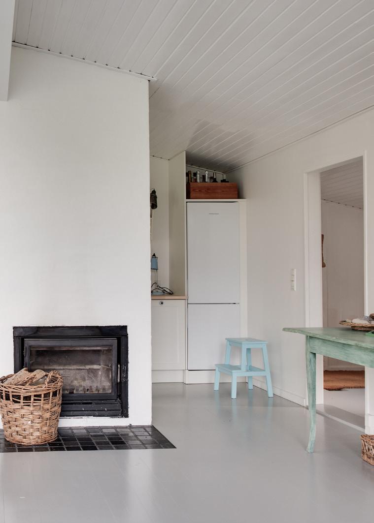 Centralt placeret i rummet står en pejs, som spreder hygge på de kolde dage. Perfekt når du trækker dig tilbage i læsehjørnet.