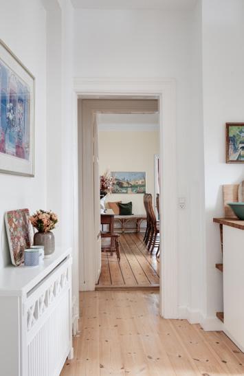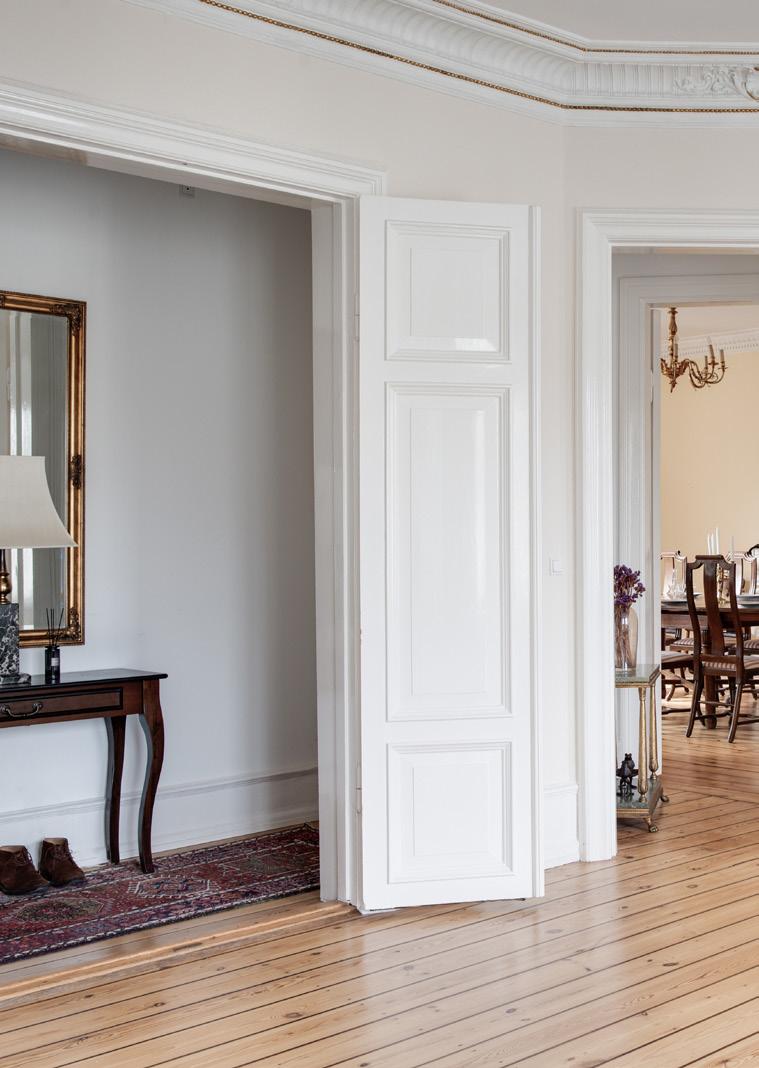 Gå op for den elegante trappe og træd ind i den fine entré hvor du allrede kan fornemme stuens udsigt til Marmorkirken. I entréen findes et skjult skab hvor du kan gemme overtøj og sko væk.
