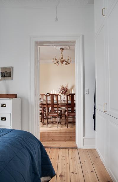 Lejlighedens rummelige stue udstråler ægte Københavnsk klasse. Den storslåede udsigt til Marmorkirkens ikoniske kuppel og den imponerende loftshøjde skaber en stemning af eksklusiv ro. Her kan I nyde både udsigten og varmen fra den smukke, originale kakkelovn, der tilfører rummet charme og sjæl.