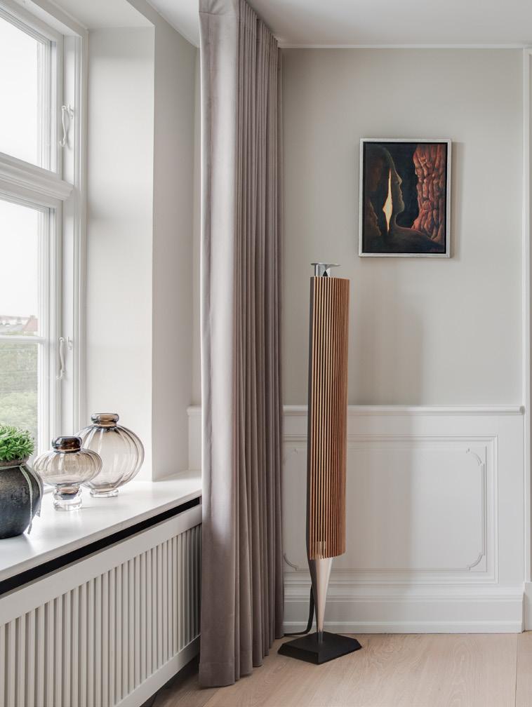 Fra denne magiske stue har du en misundelsesværdig udsigt over Kongens Have og Rosenborg Slot. Stuen er både repræsentativ og hyggelig, med plads til socialt samvær eller stille stunder i den store sofa. Her mødes du af fine detaljer som originale vægpaneler, nyt plankegulv, radiatorskjulere, og en skydedør der fører dig videre ind til den anden stue.