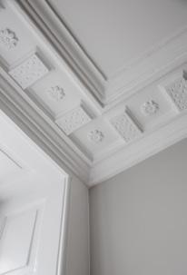 En herskabelig stue med mondæn stuk og skarpe snedkerdetaljer. De tre smukke vinduer der pryder stuen, sikrer naturligt dagslys hele dagen. Herfra har du frit udsyn over Hauser Plads hyggelige miljø.