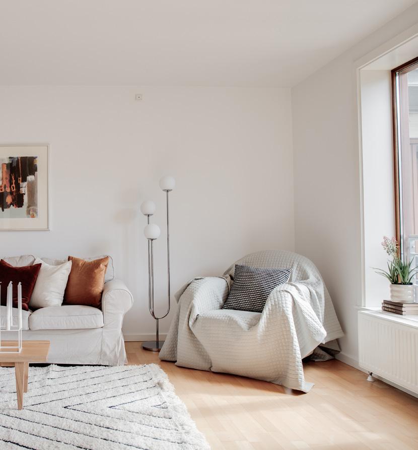 De lyse vægge og det enkle udtryk giver en følelse af rummelighed, og inspirerer til en personlig indretning, der passer til dit behov og din livsstil.