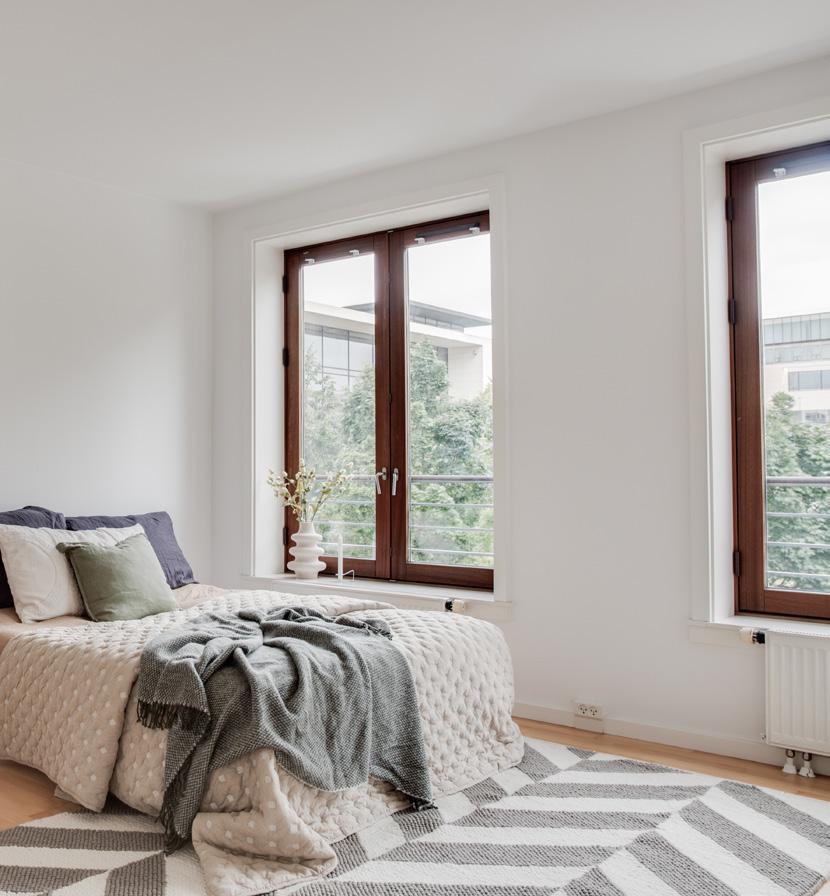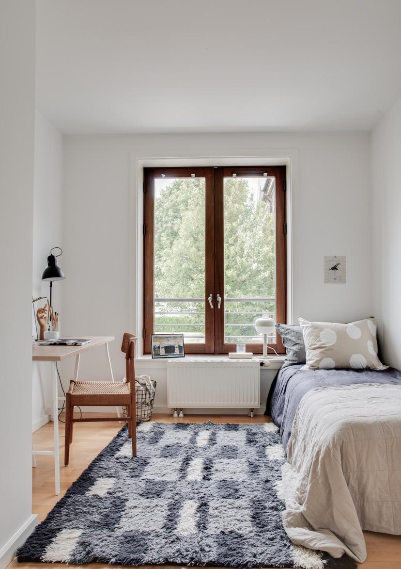 I dette mindre værelse falder lyset blødt ind gennem vinduet og gør rummet velegnet til både rolige hjemmearbejdsdage og afslapning. Med få, nøje udvalgte møbler kan du lade funktion og æstetik gå hånd i hånd – måske et skrivebord ved vinduet, en reol med dine yndlingsbøger og en mindre seng klar til gæster, eller til den lille i familien.