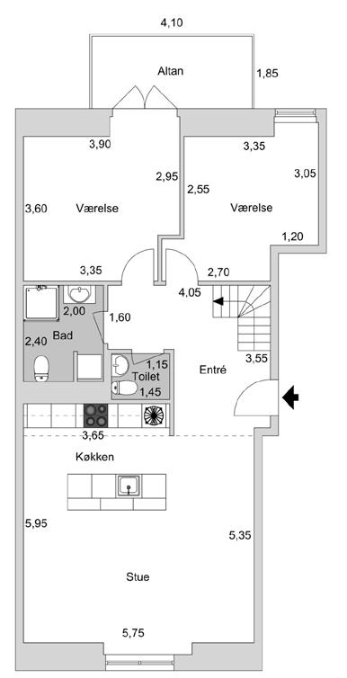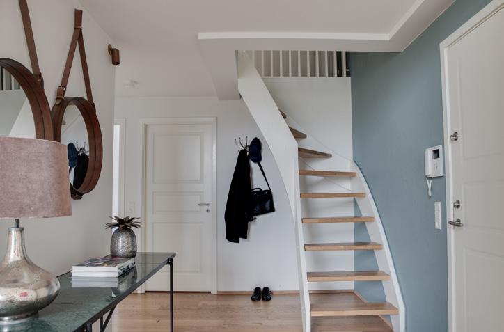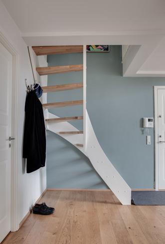 Via en af Salomon Palæs imponerende høje porte kommer du ind til en elegant og sober trappeopgang med elevator. Inde i lejligheden bydes du velkommen i en L-formet entré /gang med trappe og kig ind til det lyse køkken/alrum. Under trappen kan der indrettes med dekorative knager, og kommode til sko.