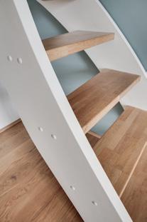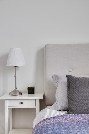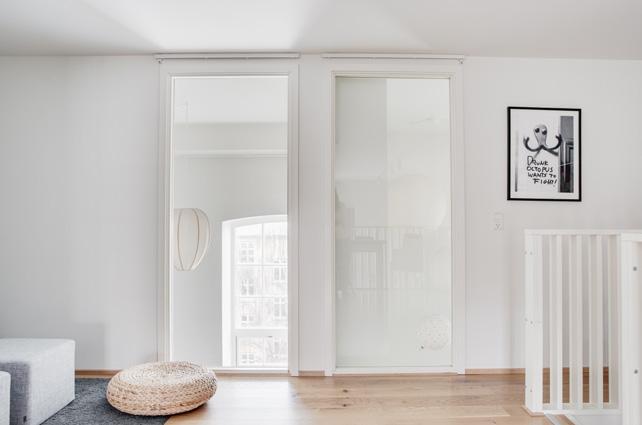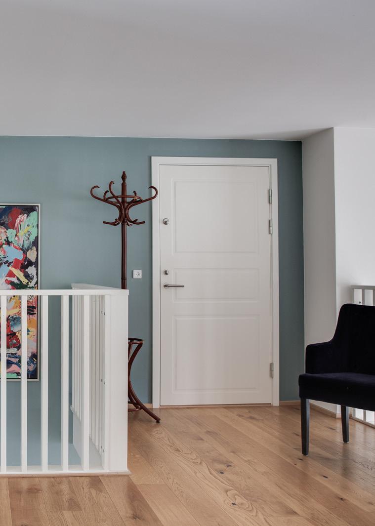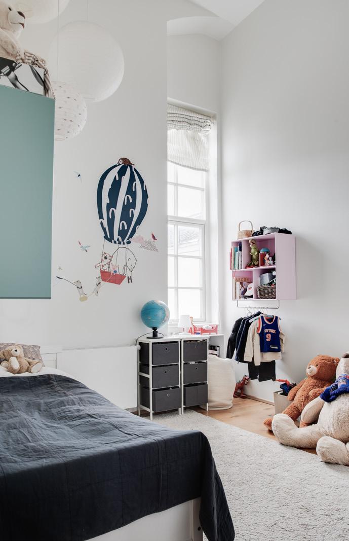 Ved siden af mastersoveværelset ligger endnu et vidunderligt soveværelse, hvor der er plads til både leg og søde drømme. Loftshøjde inspirerer til at indrette på højden. Måske en klatrevæg, et rigtigt langt stof med mønster, eller en kreativ vægmaling? Herfra er der kig op til anden etage, via et særligt vindue.