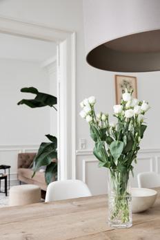 Indenfor den grønne dør på nr. 15, efterlader du hurtigt byens pulserende liv. Den pæne indgang byder dig varmt velkommen op til første sal, hvor denne elegante femværelses lejlighed ligger. De 142 kvm er fordelt på en charmerende og uventet planløsning i flere niveauer. Noget som du næsten bare ser i en citylejlighed fra 1816.