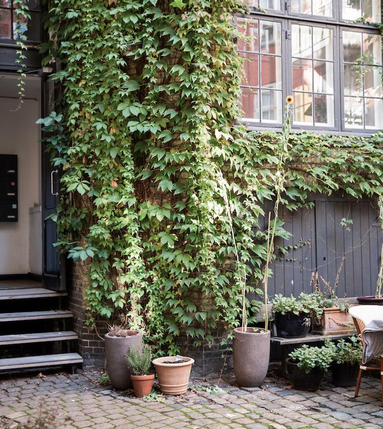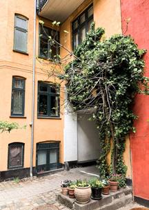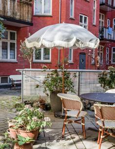 Fra entrédørren kommer du nemt ud til ejendommens idylliske gård. Den skønne private stemning, skaber en smuk udendørsoase perfekt til morgenkaffen og de grønne fingre.