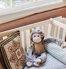 Et fredfyldt værelse med plads til både leg og søvn. Ved siden af værelset findes der desuden et opbevaringsrum.