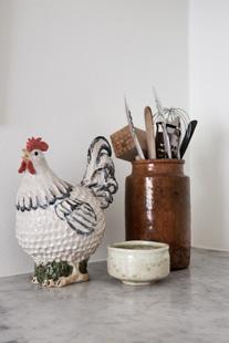 FRA ENTRÉEN kommer du direkte ind til lejlighedens hjerte og samlingspunkt, spisestuen og det indbydende køkken. Det håndbyggede køkken fra Studio Martin Lindholdt har mørkegrå fronter fra Frederiksberg Snedkeri og en eksklusiv bordplade i lys marmor. Det klassiske look fuldendes med armatur fra Toni Copenhagen og greb i messing. Komfuret, der imponerer med én meters bredde, inspirerer enhver gourmet til at have gang i flere store gryder samtidigt. Her findes desuden køleskuffer fra KitchenAid, der diskret smelter ind i møblementet. Det hele er smagfuldt veldisponeret, som var det en eftertragtet fransk bistro.