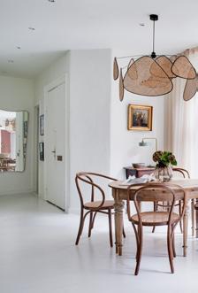 Den særlige stemning følger dig ind i lejligheden. Her mødes du af et enormt charmerende og personligt hjem med en æstetisk blanding af unikke originale detaljer og en smagfuld modernisering. Lejlighedens 130 kvm begynder i en hyggelig entré, hvor du med det samme omfavnes af hjemmets uimodståelige kvaliteter. Entréen smelter naturligt sammen med det åbne køkken med spiseplads, hvor et håndbygget Shakerkøkken med mørkegrå fronter og klassisk marmor sætter det høje kvalitetsniveau.