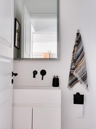 For at komme frem til din entré går du igennem den hyggelige fælles gårdhave. Her rammes du af en unik charme som øger nysgerrigheden for hvad der venter. Indgangen er ligeså indbydende som praktisk, med et sort/hvidt tapet fra Cole & Son, og en indbygget garderobe.