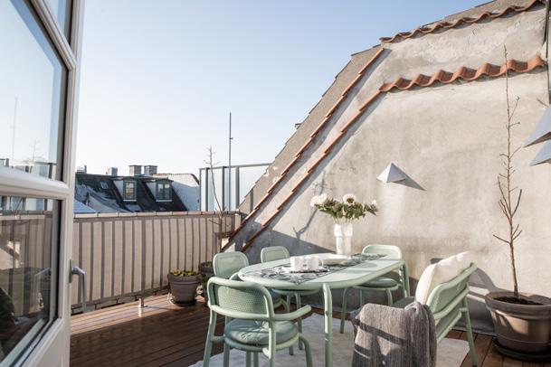Den store tagterrasse er din egen private oase med sol fra morgen til aften. Her kan dagen nydes i ro og mag, da terrassen er afskærmet mod vind og helt fri for indkig, hvilket skaber en ugeneret og afslappende atmosfære året rundt.
