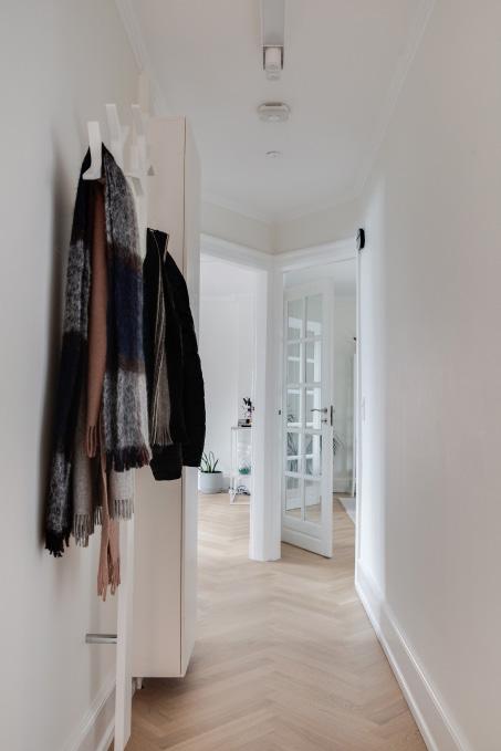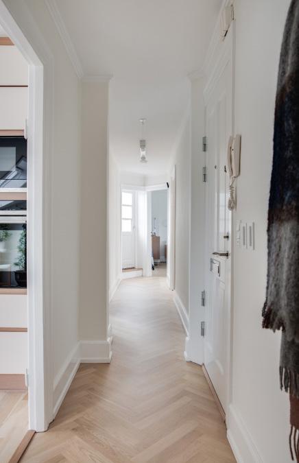 Entréen starter i den imponerende elve meter lange fordelingsgang. Herfra går du videre ind til hjemmets alle smukke værelser.