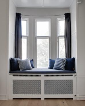 I forlængelse af stuen, ligger dette drømmekontor med plads til både gæster, arbejde og leg. Den indbyggede bogreol og karnapens fine bænk, smelter perfekt ind i den klassiske stil.