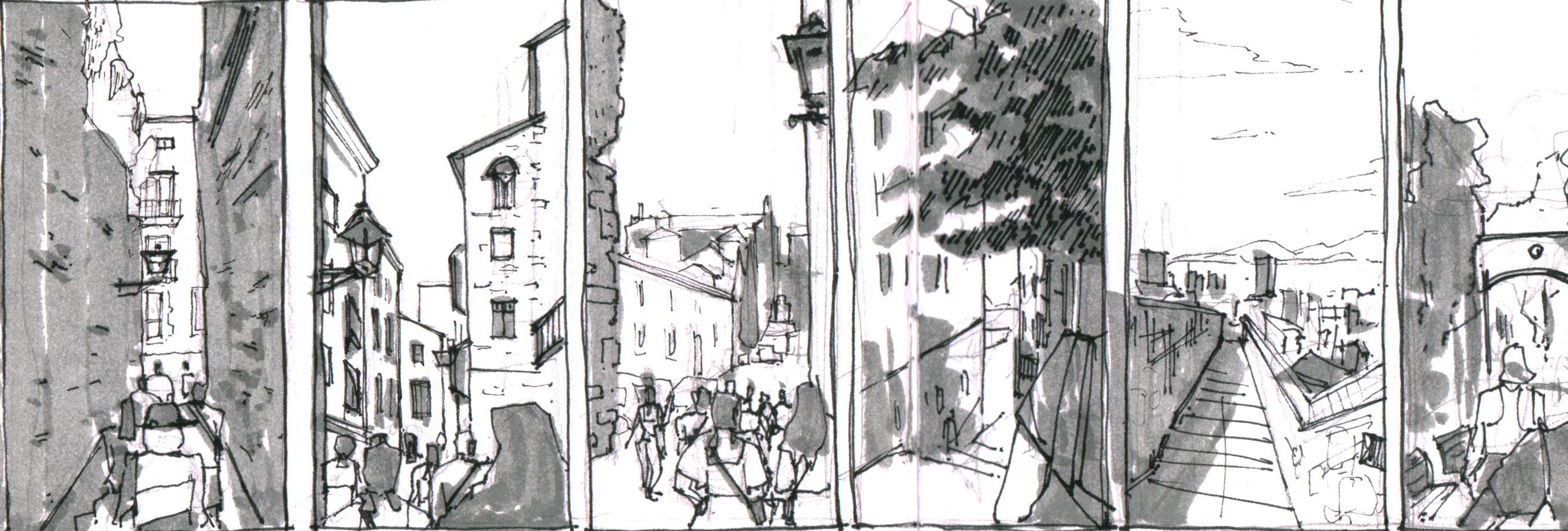 Field sketching, observation, and site analysis in pen, pencil, watercolor, and gouache.
