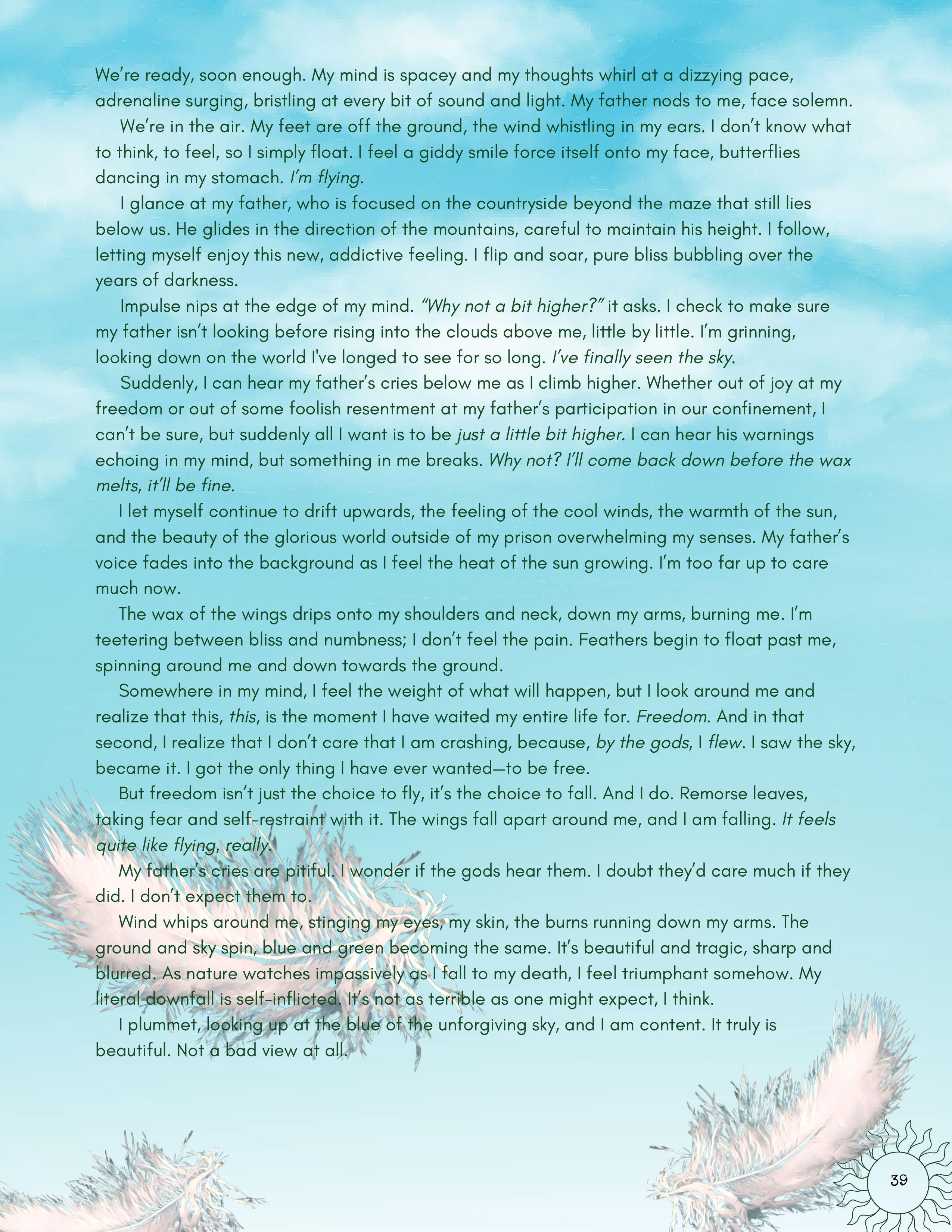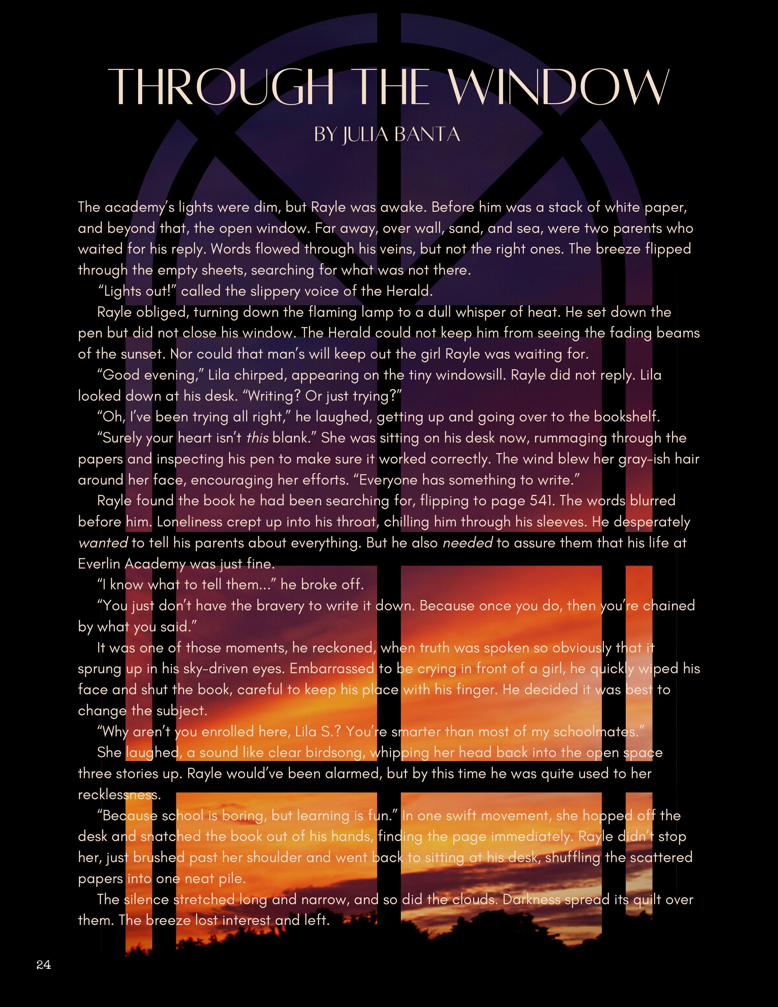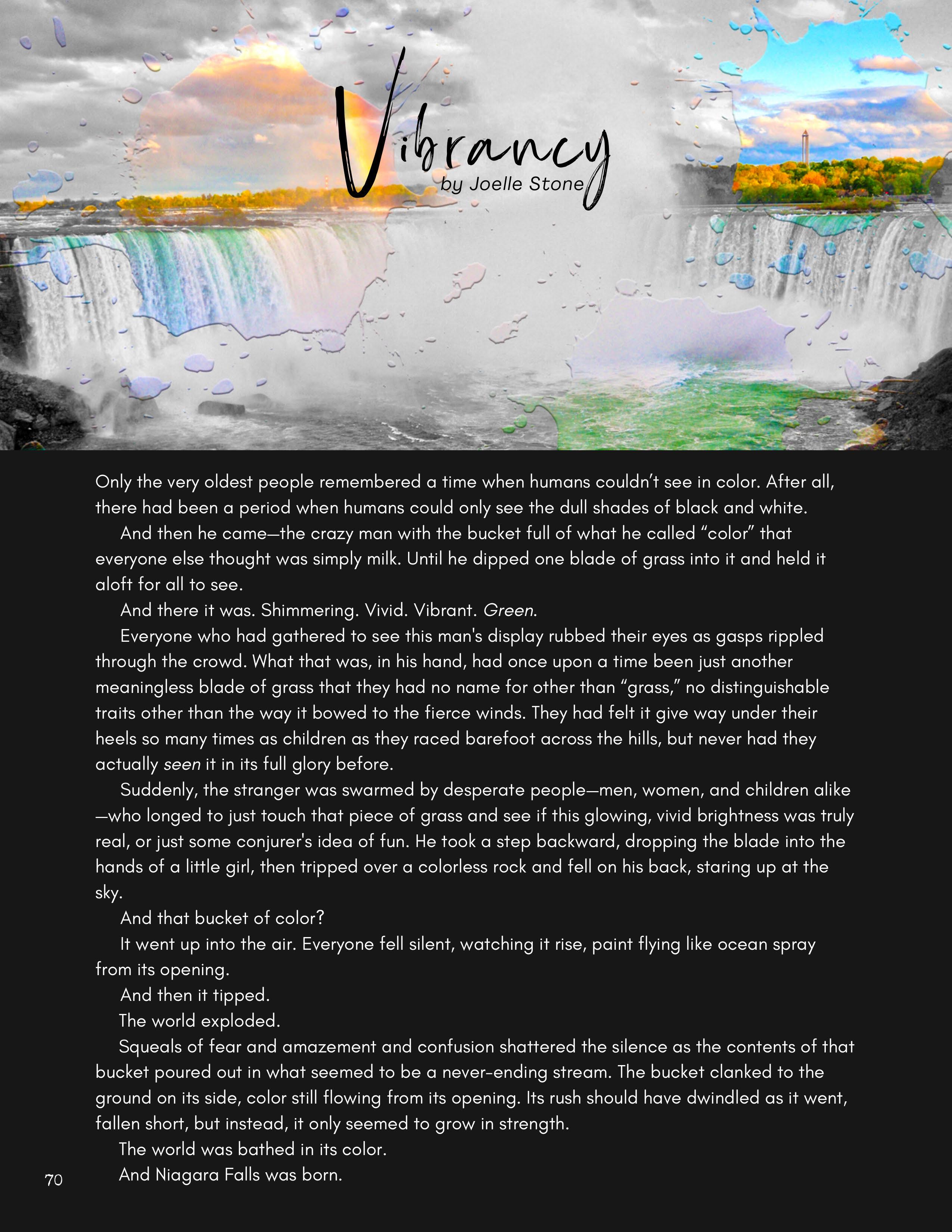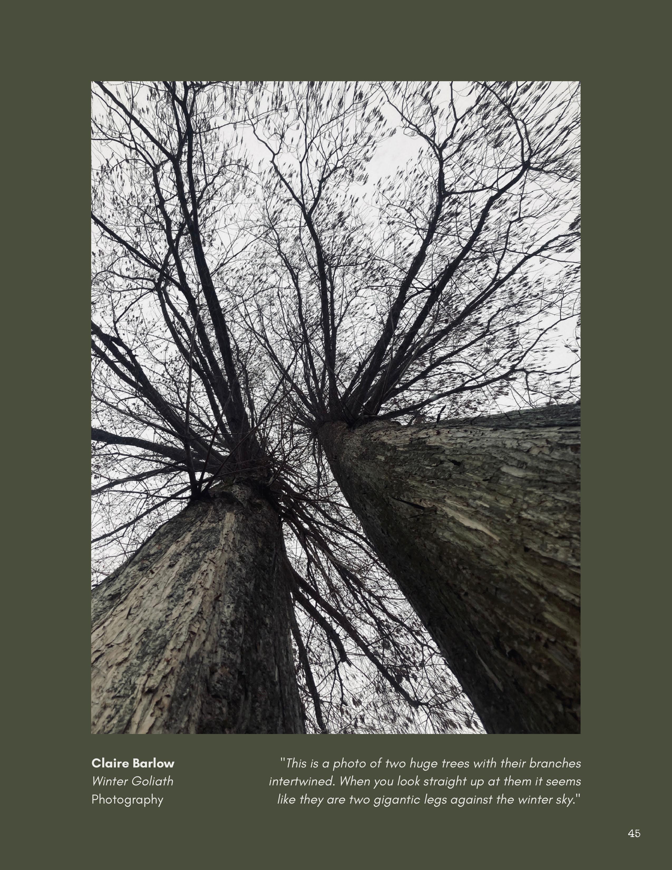 All submissions to the magazine, whether accepted or not, go through a review process where one of our student editors works with the writer or artist to strengthen their work. This experience creates both a creative dialogue and a friendly environment where a student passionate about art or writing can become part of a larger community, engaging with students who share this passion.