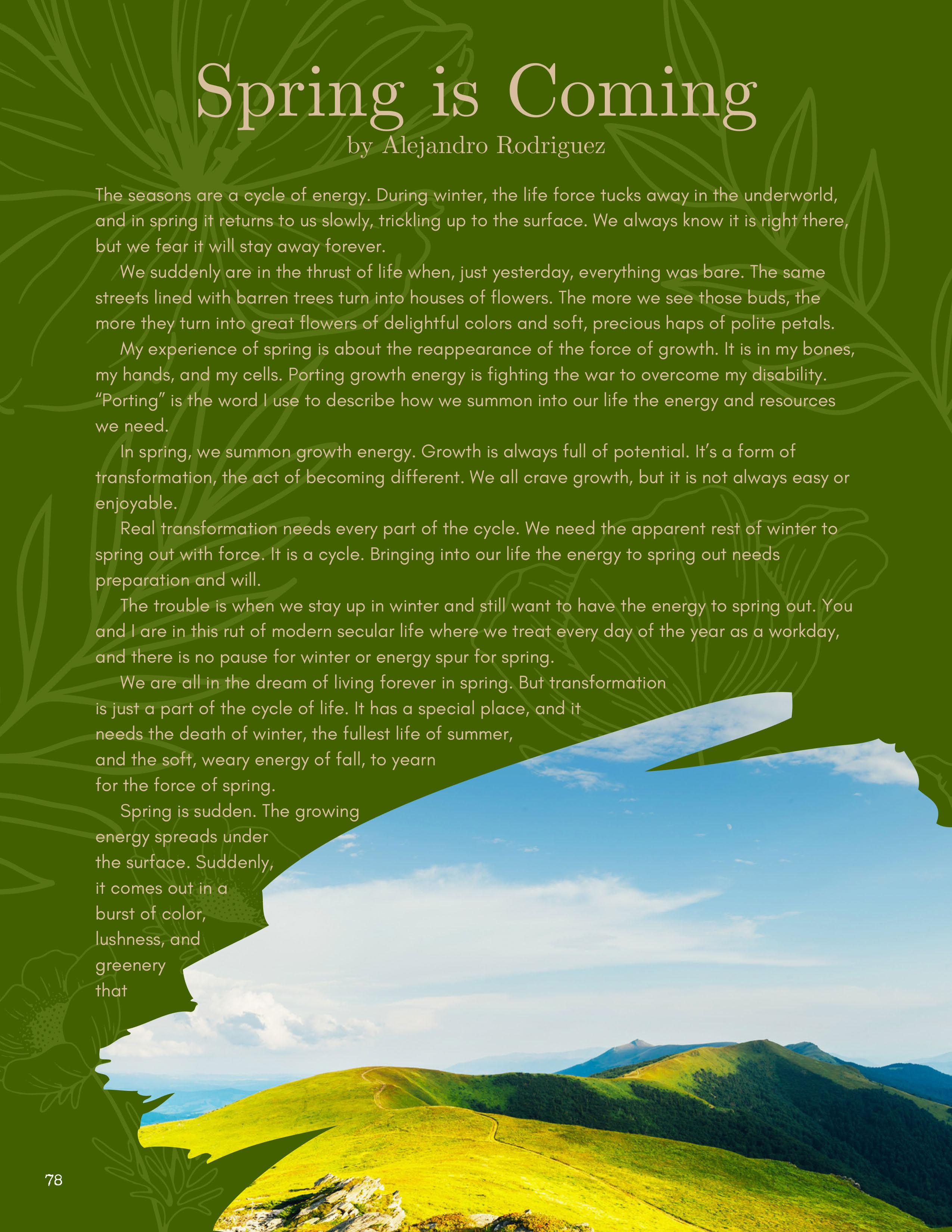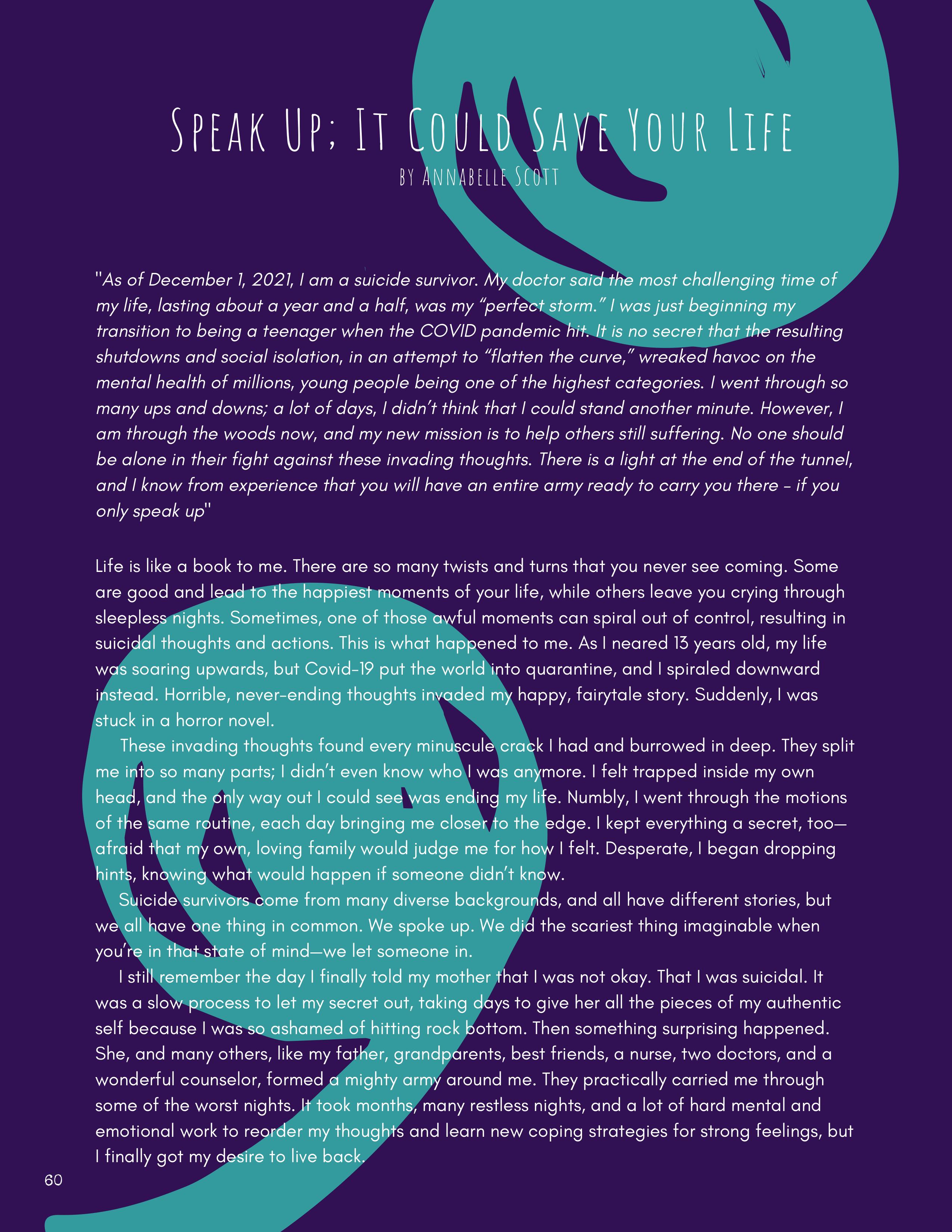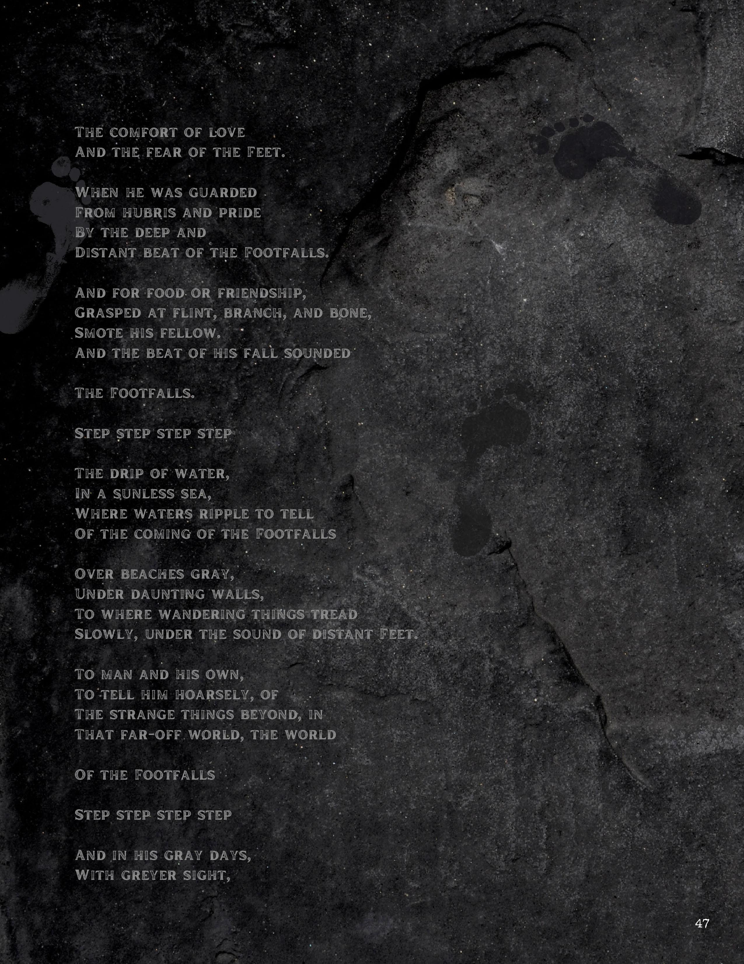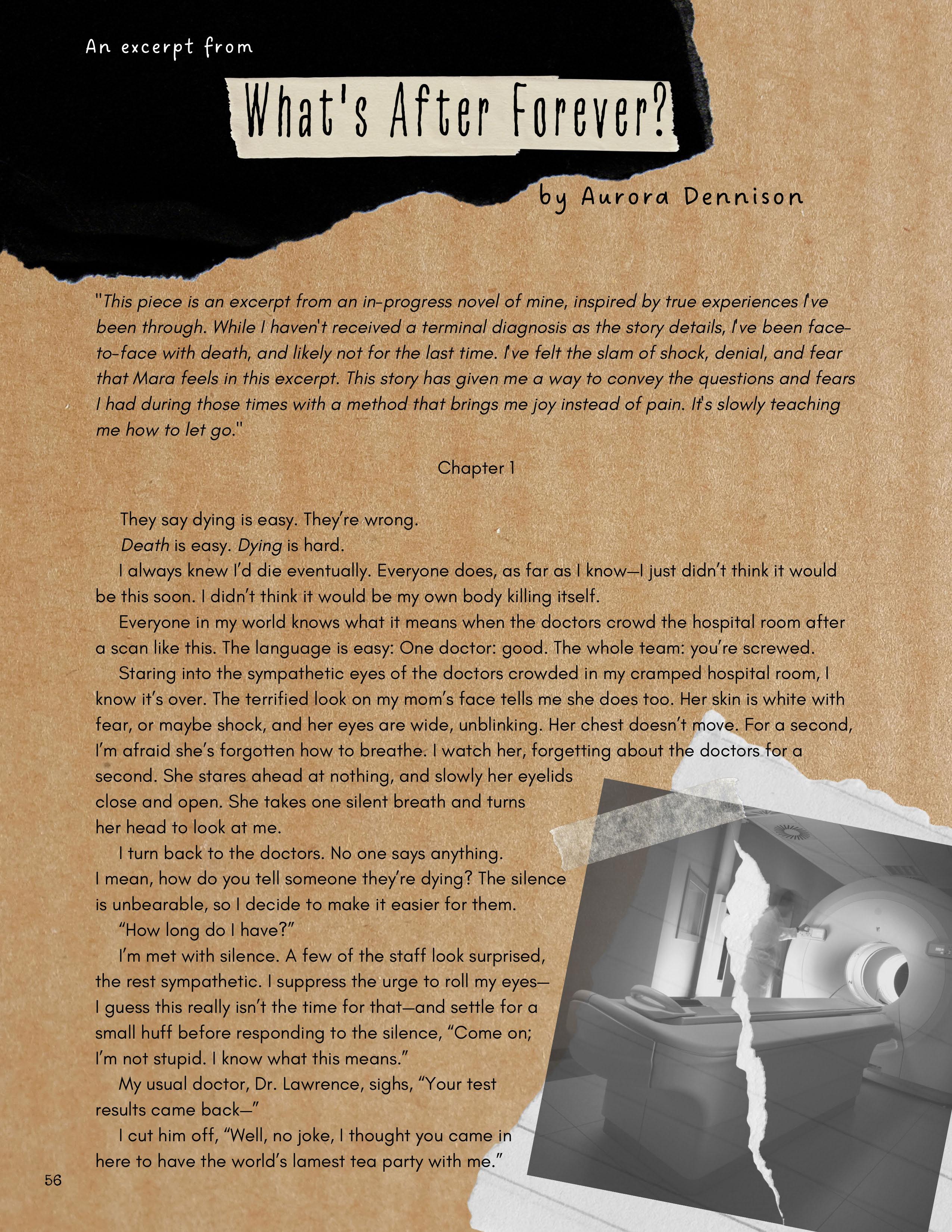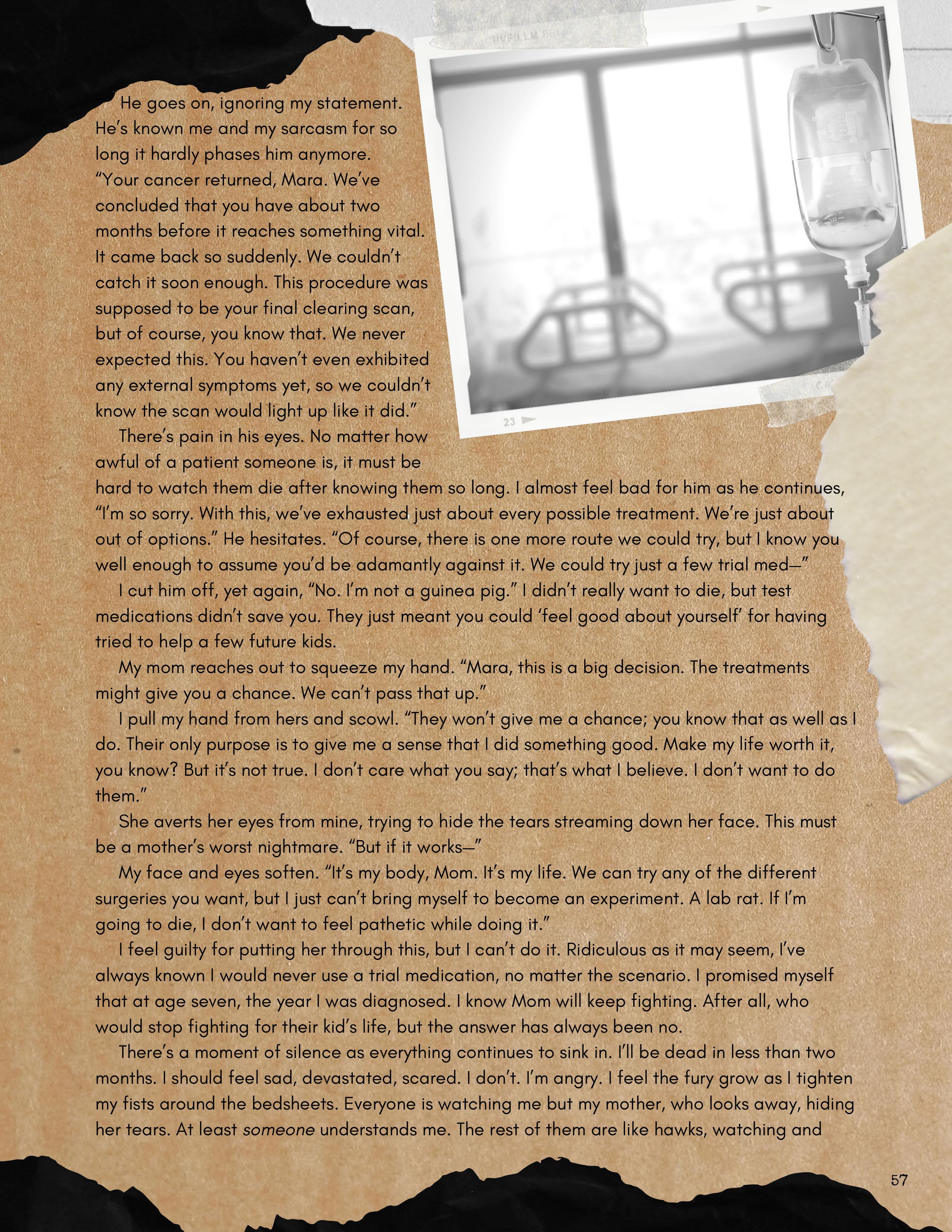 All submissions to the magazine, whether accepted or not, go through a review process where one of our student editors works with the writer or artist to strengthen their work. This experience creates both a creative dialogue and a friendly environment where a student passionate about art or writing can become part of a larger community, engaging with students who share this passion.