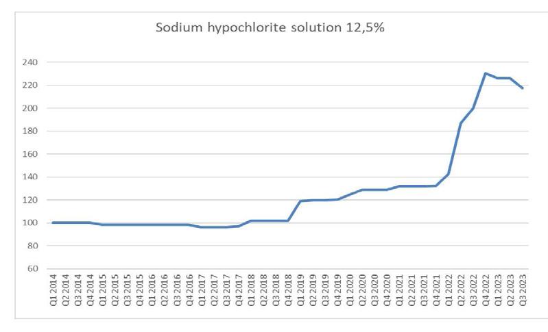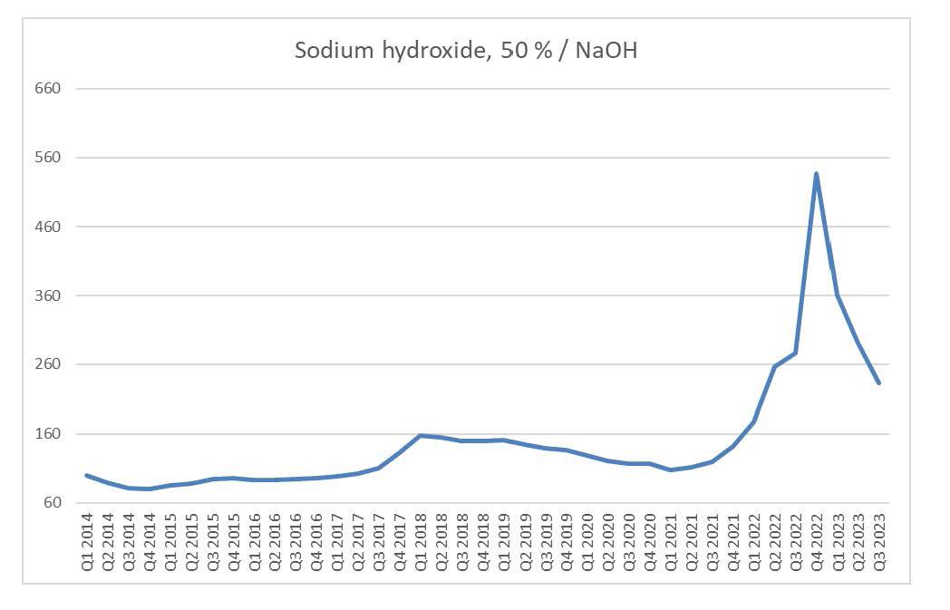 that raw material prices will stabilize the last quarter of the year. The unknown factor is still if we will se increased energy prices in Q4 (2023) and Q1 (2024) due to the winter. Alkaline raw materials have continued to fall during the summer. The current level is however still above previous times’ raw material prices and we will start to see a stabilized price level during the end of Q3. In generel, most raw material prices show a downward trend and is no longer subject to energy surcharges from manufacturers.