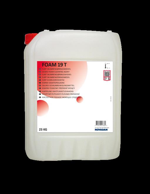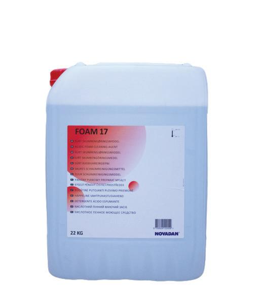 Foam 17 T with a Phosphoric acid content of 5 – 10 % gives a stable foam when applied by foam equipment. Foam 17 T dissolves effectively calcium – and protein deposits. The product does not contain nitrate.