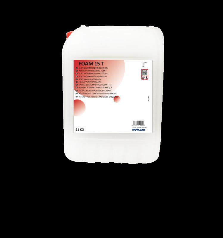 Foam 15 T is a product that was developed during the delivery crisis and the purpose was to develop a product that was not based on Phosphoric Acid. The product ensures – as our other products – a strong, stable foam when applied by foam equipment. The foam ensures an optimal wetting and thereby high cleaning quality that leaves the surfaces clean. Can be used on aluminum with caution.