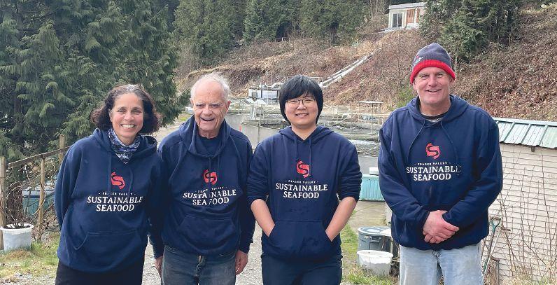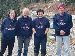 The team behind Richard Henly Fish Farm takes a break for a photo opportunity, from left: Sophie Viswanathan, Larry Albright, Anqi Yuan and Richard Henly PHOTO: LIZA MAYER
